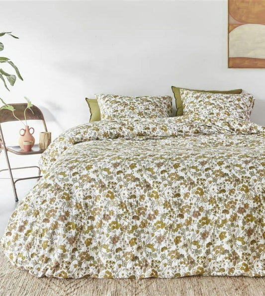 Essenza Fleur Golden Yellow dekbedovertrek katoensatijn 210TC