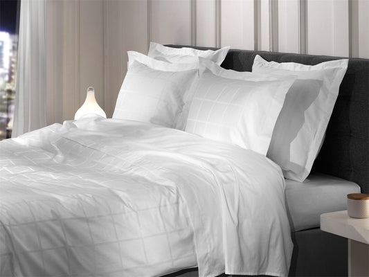 Heckett Lane Diamante ruitdessin katoensatijn dekbedovertrek wit, white