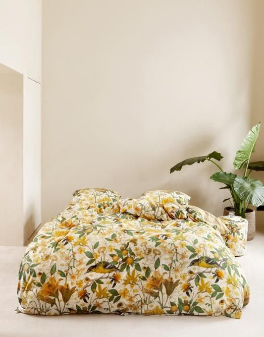 Essenza Guy Yellow katoenen dekbedovertrek vintage washed