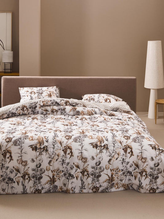 Essenza Fleur Taupe dekbedovertrek katoensatijn 210TC