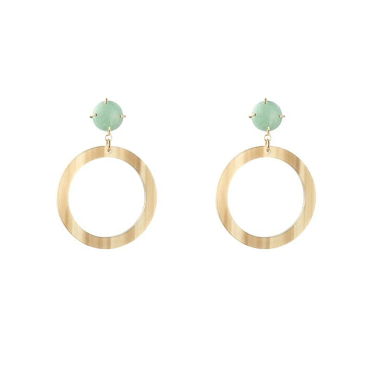 Boucles d'oreilles longues et rondes avec perle turquoise couleur pétrole