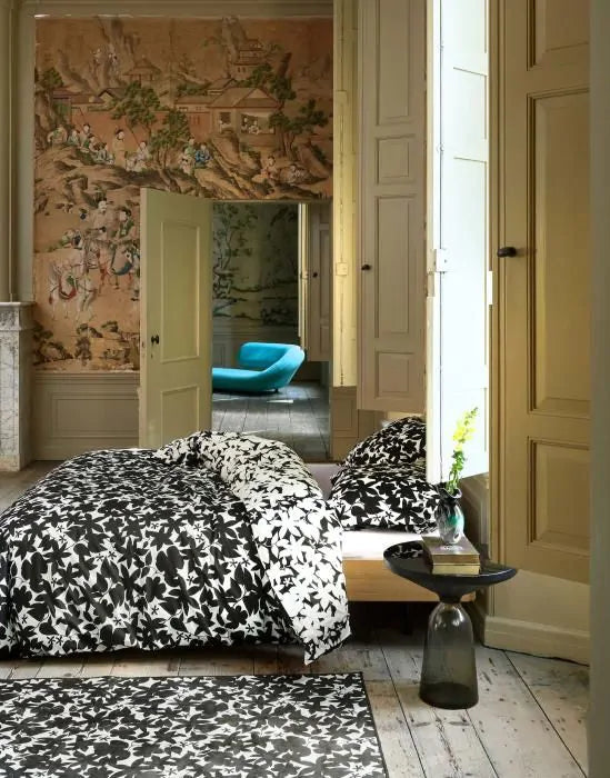 Essenza Imara Housse de couette en percale de coton 200 fils anthracite, silhouette Clématite