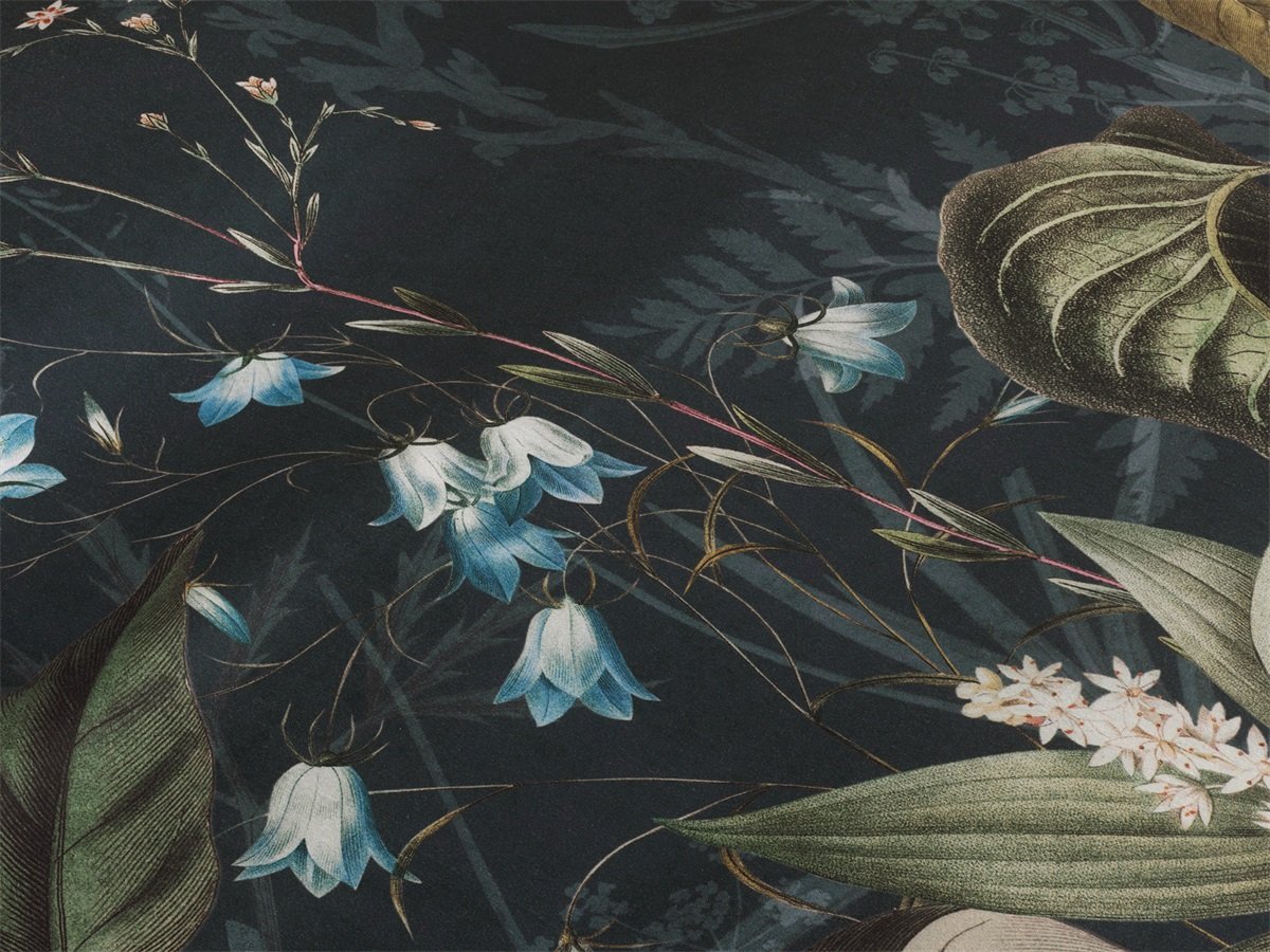 La housse de couette Heckett Lane Holly – Bleu marine vous emmène dans un monde de tranquillité et d'élégance, où le bleu foncé profond joue le rôle principal. Au bas du devant, vous trouverez un imprimé botanique enchanteur où se rencontrent de grandes feuilles majestueuses et de délicates fleurs bleues. Leurs ombres s'élèvent vers le haut, créant un jeu fascinant d'ombre et de lumière. Le dos dévoile un sublime imprimé all-over de fougères dans des tons de vert clair et foncé. Ce motif crée un sentiment de calme et de sophistication, tout en soulignant le lien avec la splendeur de l'extérieur. Plongez dans le bleu foncé profond de la nuit tout en profitant de la splendeur botanique luxuriante de cette magnifique housse de couette.