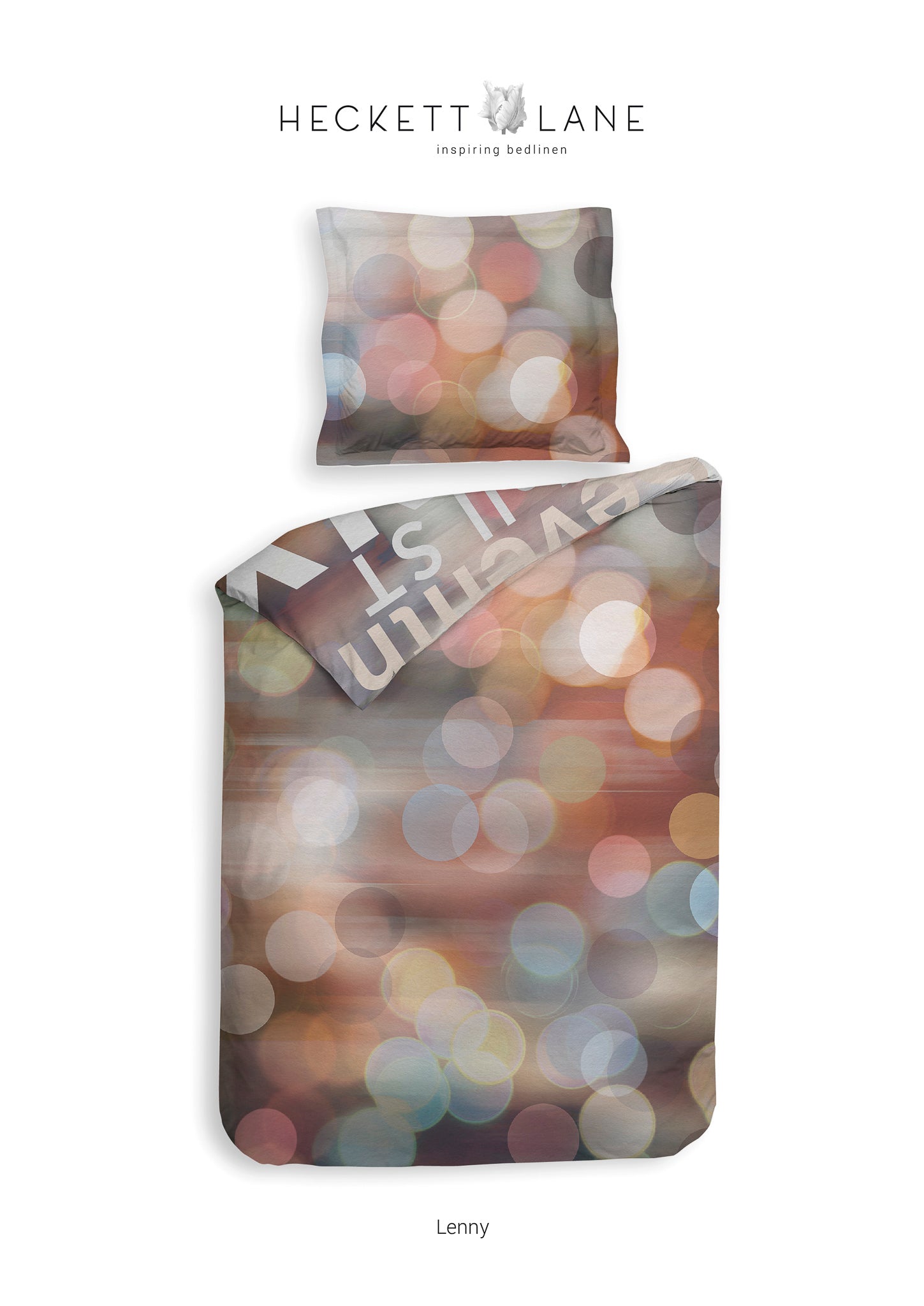 La housse de couette Lenny de Heckett Lane vous emmène dans « La ville du rêve ». La couverture contient divers textes liés à New York, notamment Broadway, Times Square et la 5e Avenue. L’arrière-plan reflète l’agitation de la ville, ce qui donne un effet dynamique et sympa. La housse de couette est imprimée des deux côtés avec toutes les boules colorées au dos sur le même fond flou. Les deux imprimés sont également visibles sur les taies d'oreiller, qui sont également dotées d'un bord Oxford.