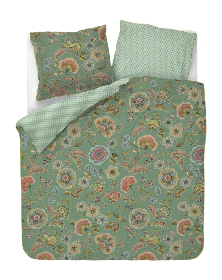 La housse de couette Viva Las Flores de Pip Studio est recouverte de roses imaginatives, de fleurs de la passion et de dahlias qui rappellent les murs fleuris des petits villages espagnols. Les branches gracieuses aux fleurs aux couleurs pastel sont élégamment entrelacées. Si vous retournez la housse de couette, vous verrez un motif floral stylisé au dos. La housse de couette et les taies d'oreiller sont luxueusement finies avec un bord cousu et un passepoil rond des deux côtés. La fermeture à nouer unique signifie que les taies d'oreiller peuvent être utilisées des deux côtés, tout comme la housse de couette. Cela donne un effet de mix & match ludique sur votre lit. La housse de couette est en percale 100% coton finement tissée de 200TC. Grâce au nombre élevé de fils, ce tissu est ferme et « croustillant » et est plus doux et plus fin que le coton normal. La literie a également une forte capacité d'absorption de l'humidité et est fraîche pour dormir en dessous. La housse de couette est facile à réaliser grâce à la bande de rentrée extra longue sur toute la largeur. Vous pouvez laver la housse jusqu'à 60 degrés, la repasser et elle convient au sèche-linge. Pip Studio a conçu un emballage luxueux et durable spécialement pour ce design. La housse de couette Pip Studio est un beau cadeau à s'offrir ou à offrir. La boîte dans le plus pur style Pip Studio peut être réutilisée pour toutes les belles choses que vous souhaitez conserver. Pip Studio fabrique des produits heureux pour des personnes heureuses.