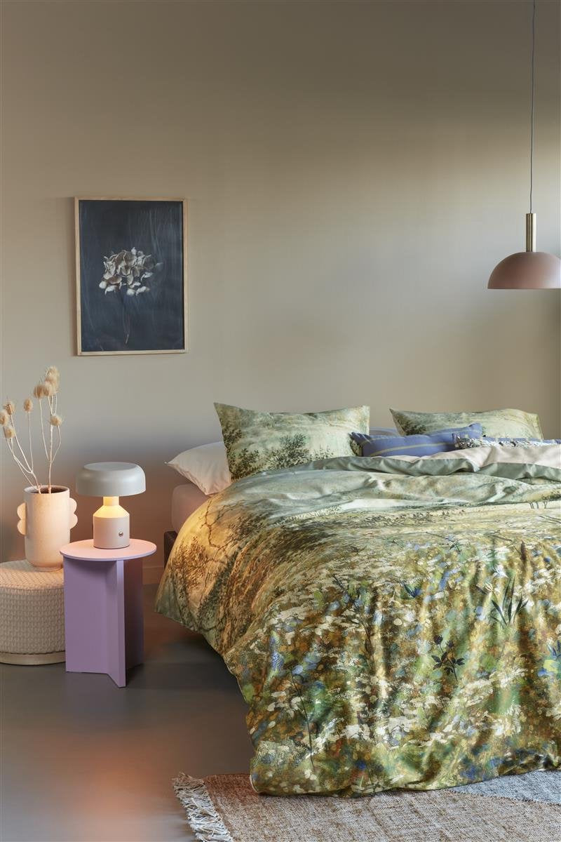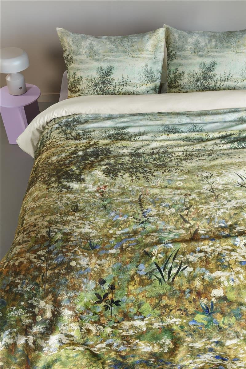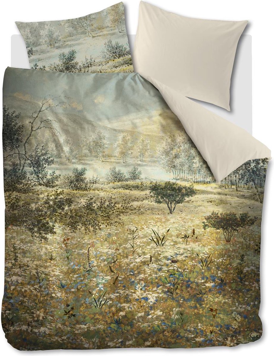 Dit prachtige Beddinghouse Prado dekbedovertrek is een plaatje om te zien. Het dessin bestaat uit een mooie print van een mystiek landschap met heuvels, planten en een gebied vol grassen. De afbeelding is geïnspireerd op het impressionisme en bevat dan ook allerlei kleine vlekjes en stippen. Dankzij deze opbouw krijgt het geheel een schilderachtige uitstraling. Ook vormt de print een stijlvolle toevoeging voor je interieur. En ben je na een tijdje weer toe aan iets anders? Sla dan het overtrek om, want de achterzijde heeft een effen ecru kleur. Hierdoor kun je het beddengoed op meerdere manieren gebruiken.