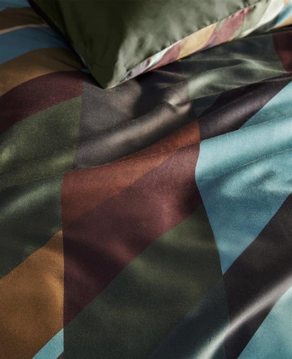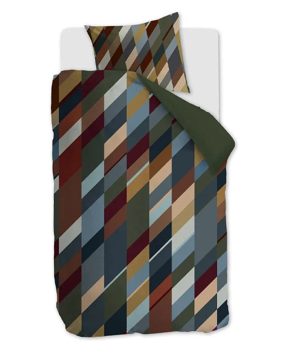 Dekbedovertrek Roan Olive Green van Beddinghouse heeft een prachtig grafisch ruitdessin in groen-, bruin- en zandtinten. De achterkant van het overtrek heeft een effen donkergroene kleur.