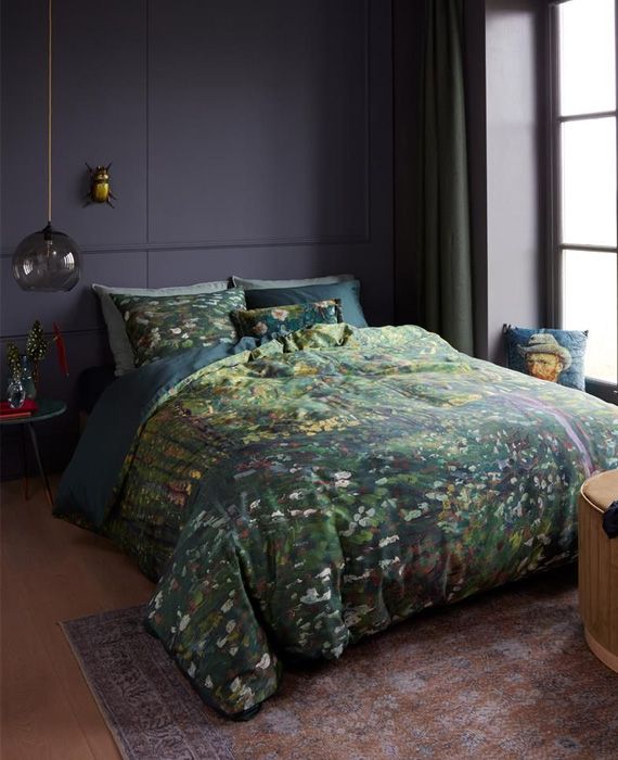 Beddinghouse is een unieke samenwerking aangegaan met het Van Gogh Museum in Amsterdam wat heeft geresulteerd in een zeer speciale collectie. Elk dessin is geïnspireerd op één van de schilderijen van Vincent van Gogh. Hij experimenteerde in Parijs met de stippeltechniek waar dit bosgezicht een goed voorbeeld van is. Hij bedekte het hele doek met kleine verftoetsen waarmee hij een spel creëerde van licht en schaduw op de grond. De streep geel in het midden suggereert zonlicht op een open plek verderop. Samen met de boomstam geeft dit diepte aan de voorstelling. Dit luxe Beddinghouse dekbedovertrek is gemaakt van 100% satijn katoen; 220TC waardoor het overtrek een chique glans heeft en heerlijk zacht en glad aanvoelt. De speciale druktechniek zorgt ervoor dat het geheel extra zacht aanvoelt en de kleuren mooi blijven. Het dekbedovertrek heeft een extra lange instopstrook over de gehele breedte aan beide zijden en is ook geschikt voor extra lange dekbedden.