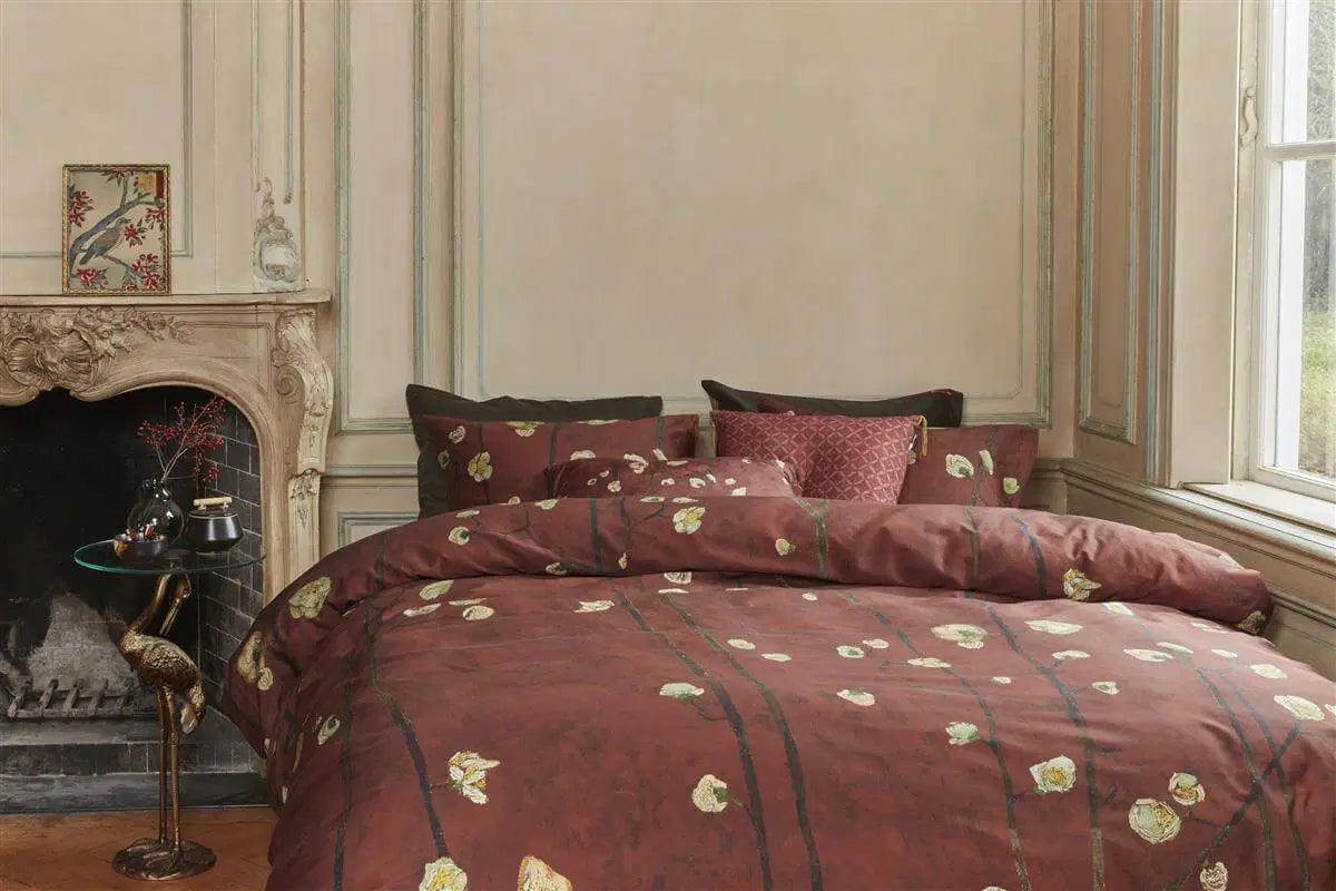 Het mooie Beddinghouse x Van Gogh Museum Plum Blossoms dekbedovertrek ziet er prachtig uit op je bed. Dit dessin is een waar kunstwerk en geïnspireerd op het schilderij ‘Bloeiende pruimenboomgaard’ van Vincent van Gogh. De sierlijke takjes en witte bloesems komen goed naar voren tegen de donkerrode achtergrond. Ook lijkt het alsof Van Gogh stevige penseelstrepen heeft gebruikt, wat zorgt voor een speels effect. En wil je na een tijdje weer iets anders op je bed? Draai dan het overtrek om, want de achterzijde bevat een effen rode print. Hierdoor kun je het beddengoed op meerdere manieren gebruiken.