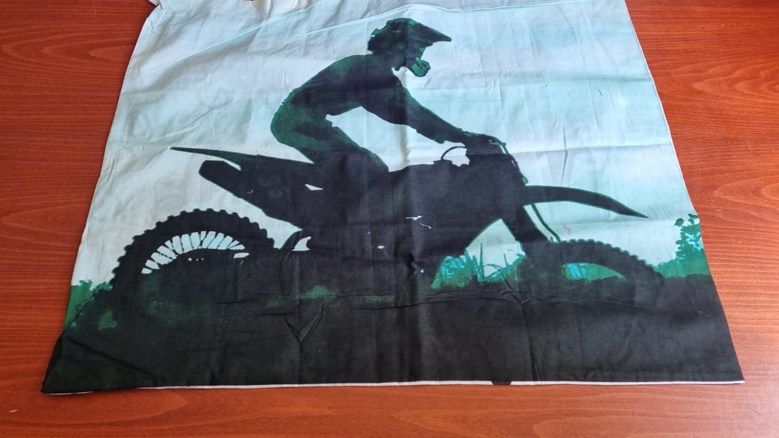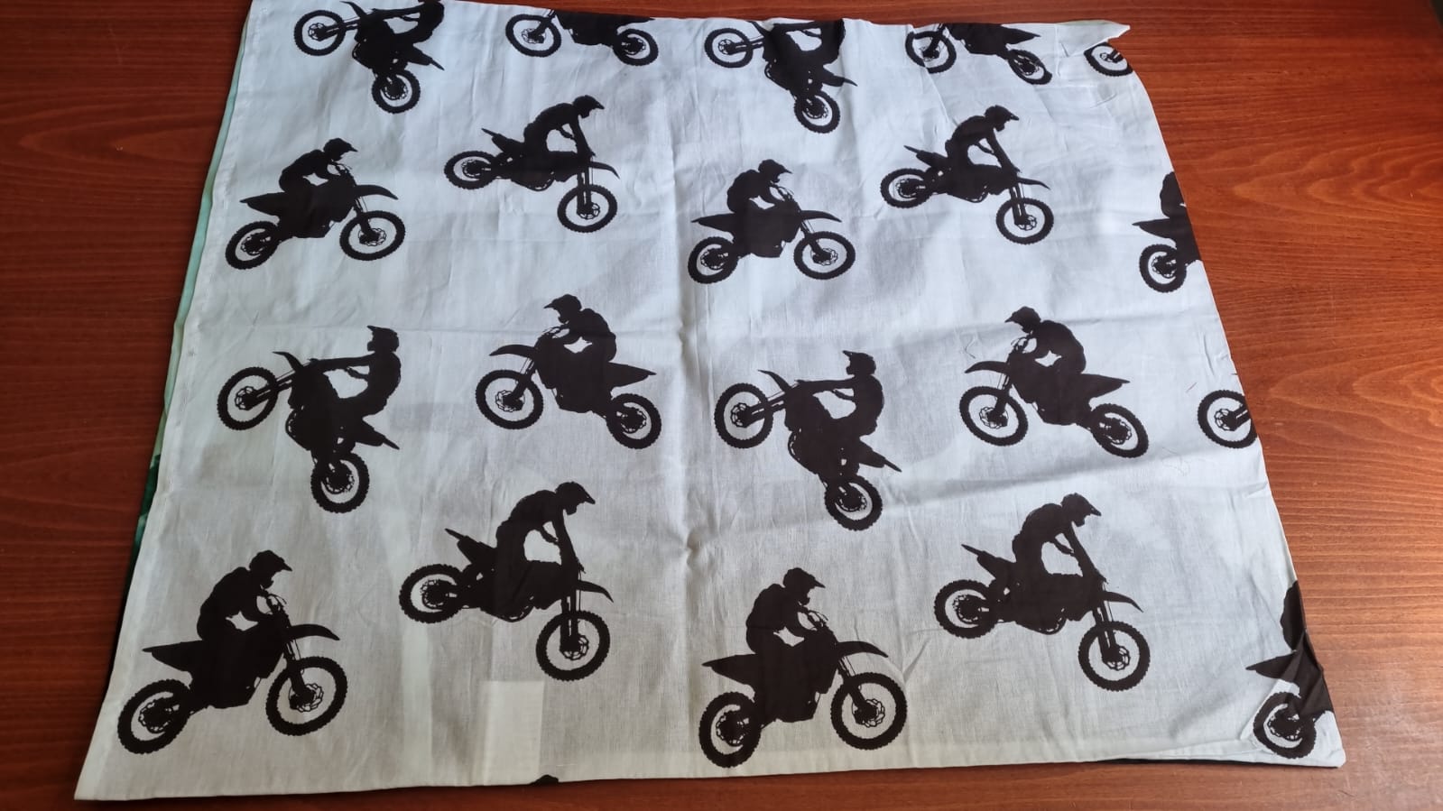 Deze leuke kussensloop is perfect voor motorcrossliefhebbers die van afwisseling houden! De kussensloop heeft een stoer motief waarop aan de ene zijde een race is afgebeeld, en waarop aan de andere zijde een motief staat met kleine racers. Bent u dus tijdelijk even uitgekeken op de ene zijde dan is dit geen enkel probleem, draai gewoon om. 100% katoen