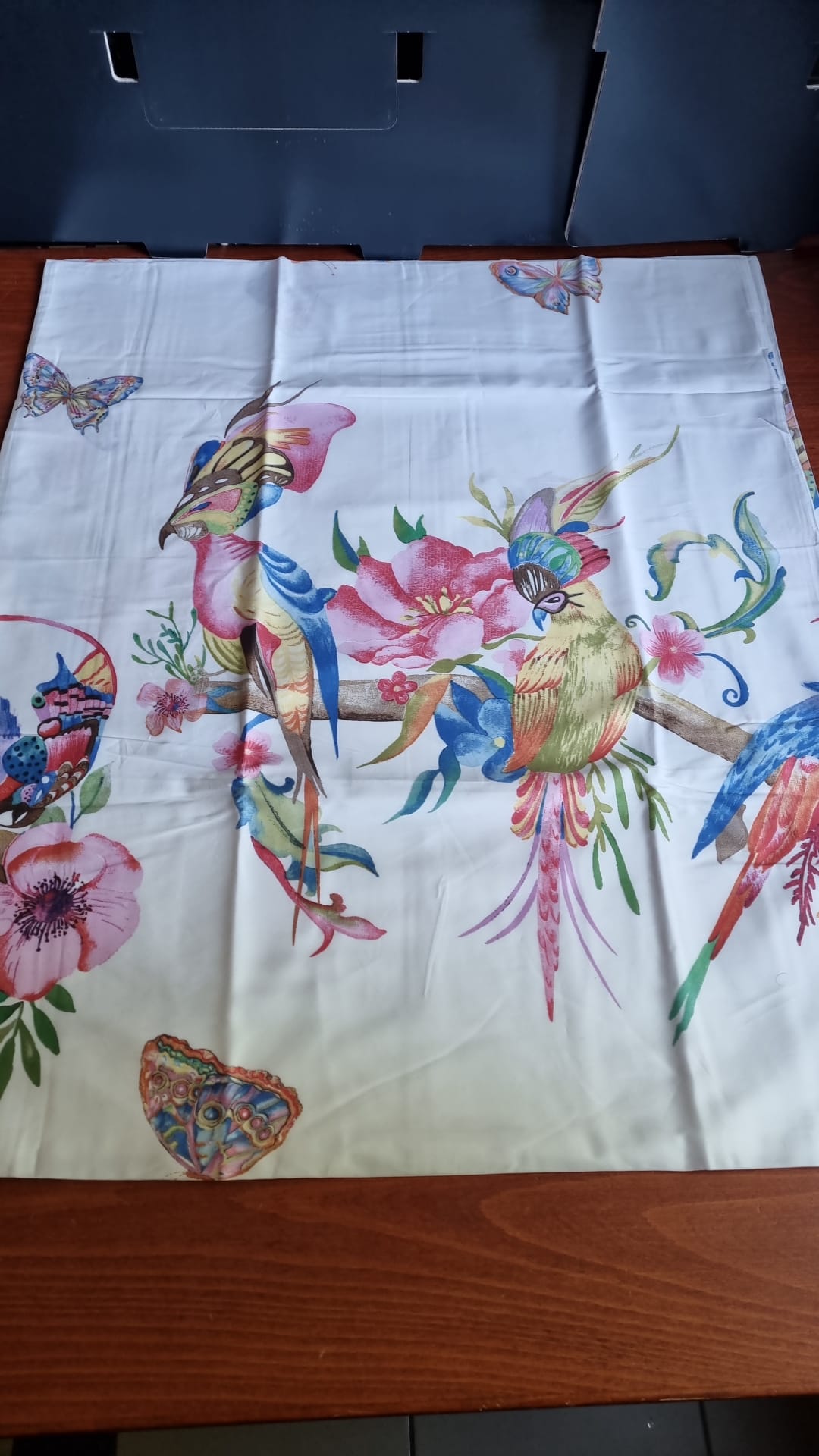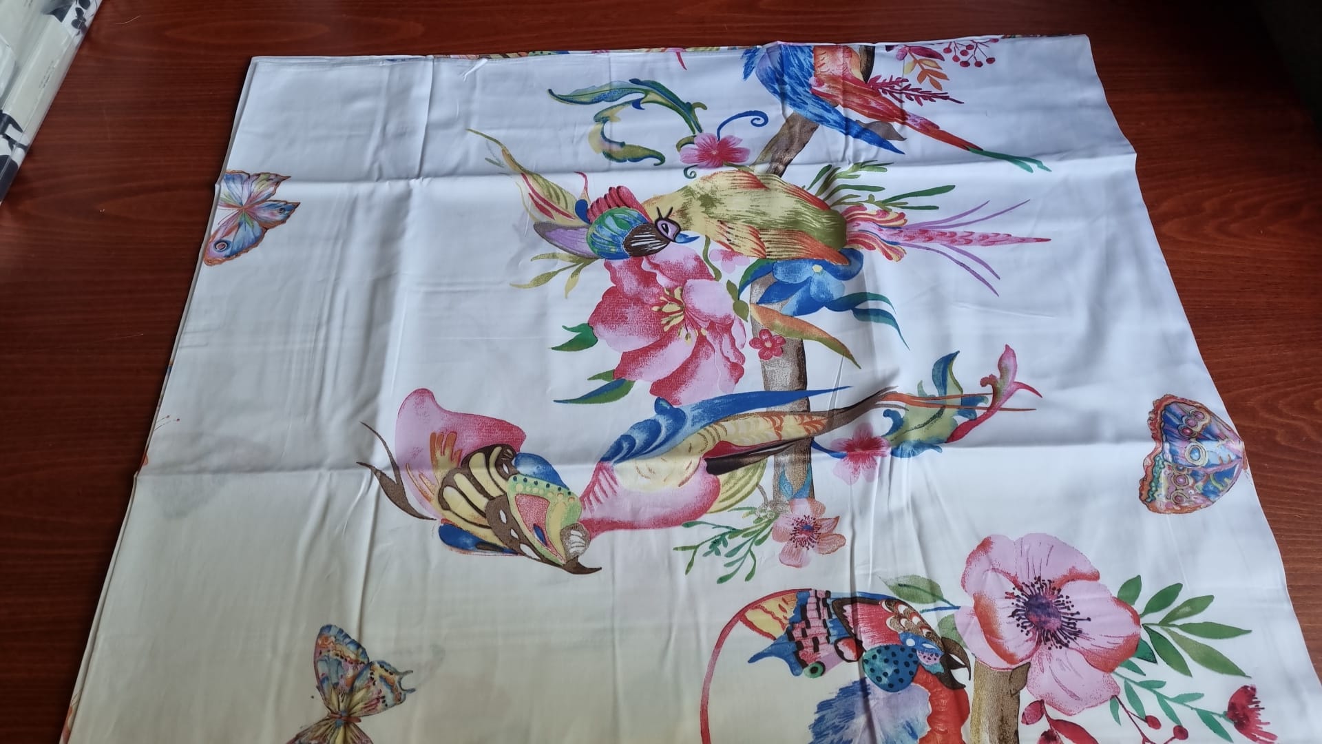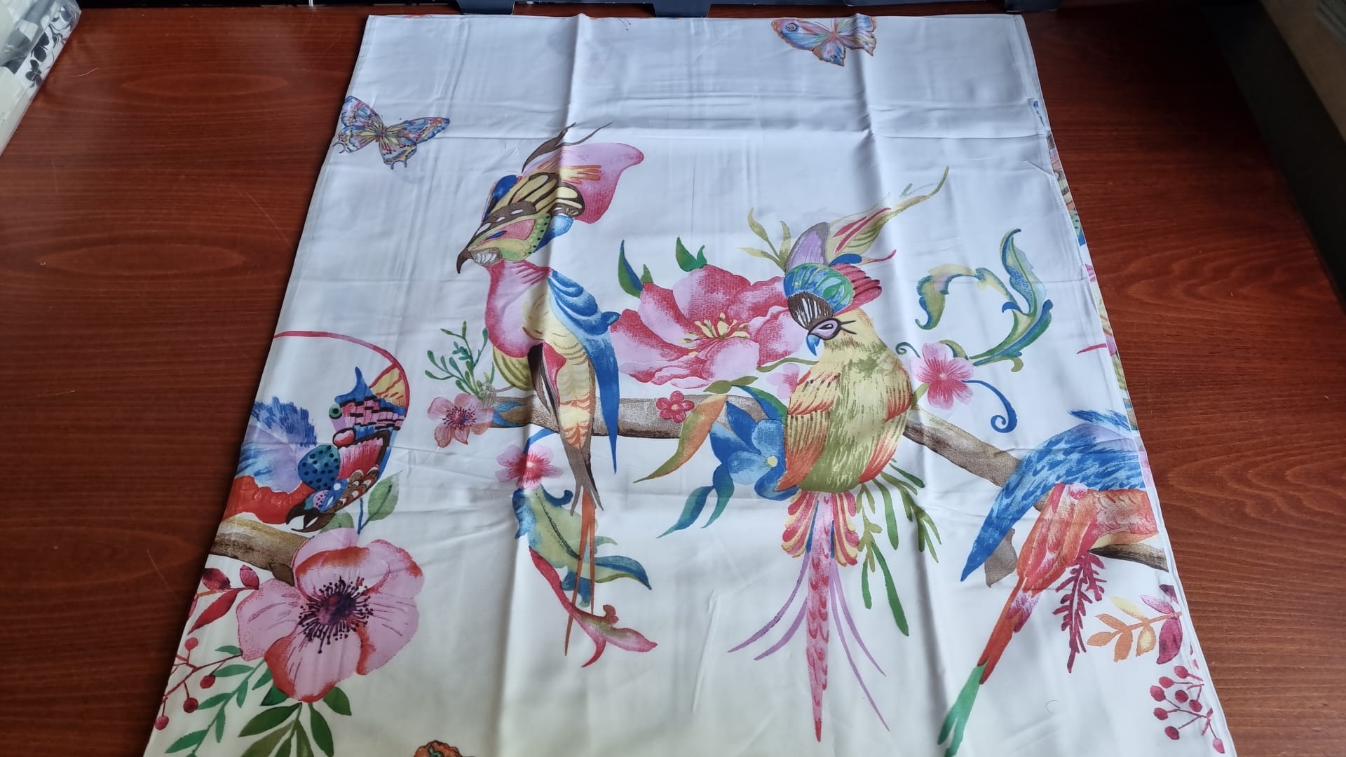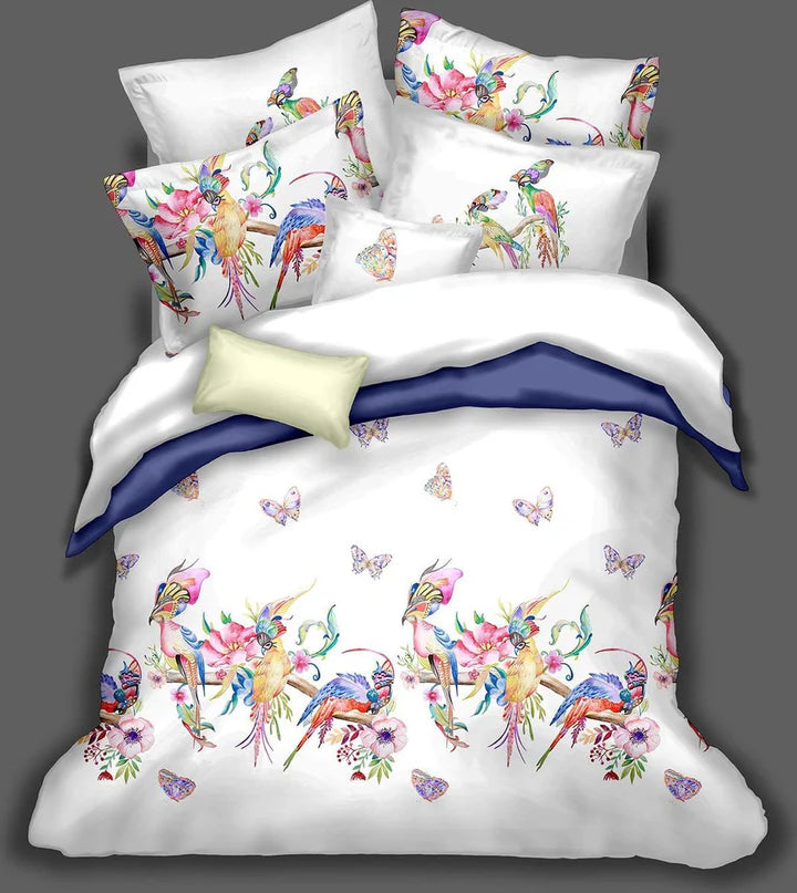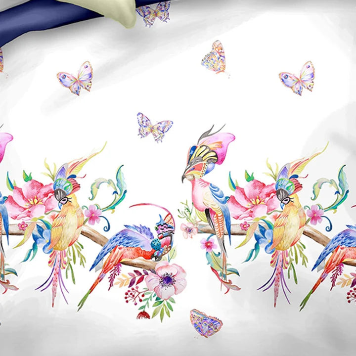- Garden katoen satijnen dekbedovertrek uit de SATIJN COLLECTIE van Dommelin. Het dekbedovertrek is wit met afbeeldingen van tropische vogels, bloemen en vlinders.