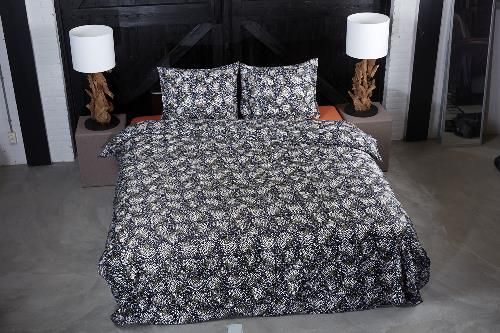 Dekbedovertrek Mile van Dommelin is bezaaid met het duizendblad. De ondergrond is zwart. Door het gebruik van satijn 300TC heeft dit overtrek Mile een chique uitstraling.