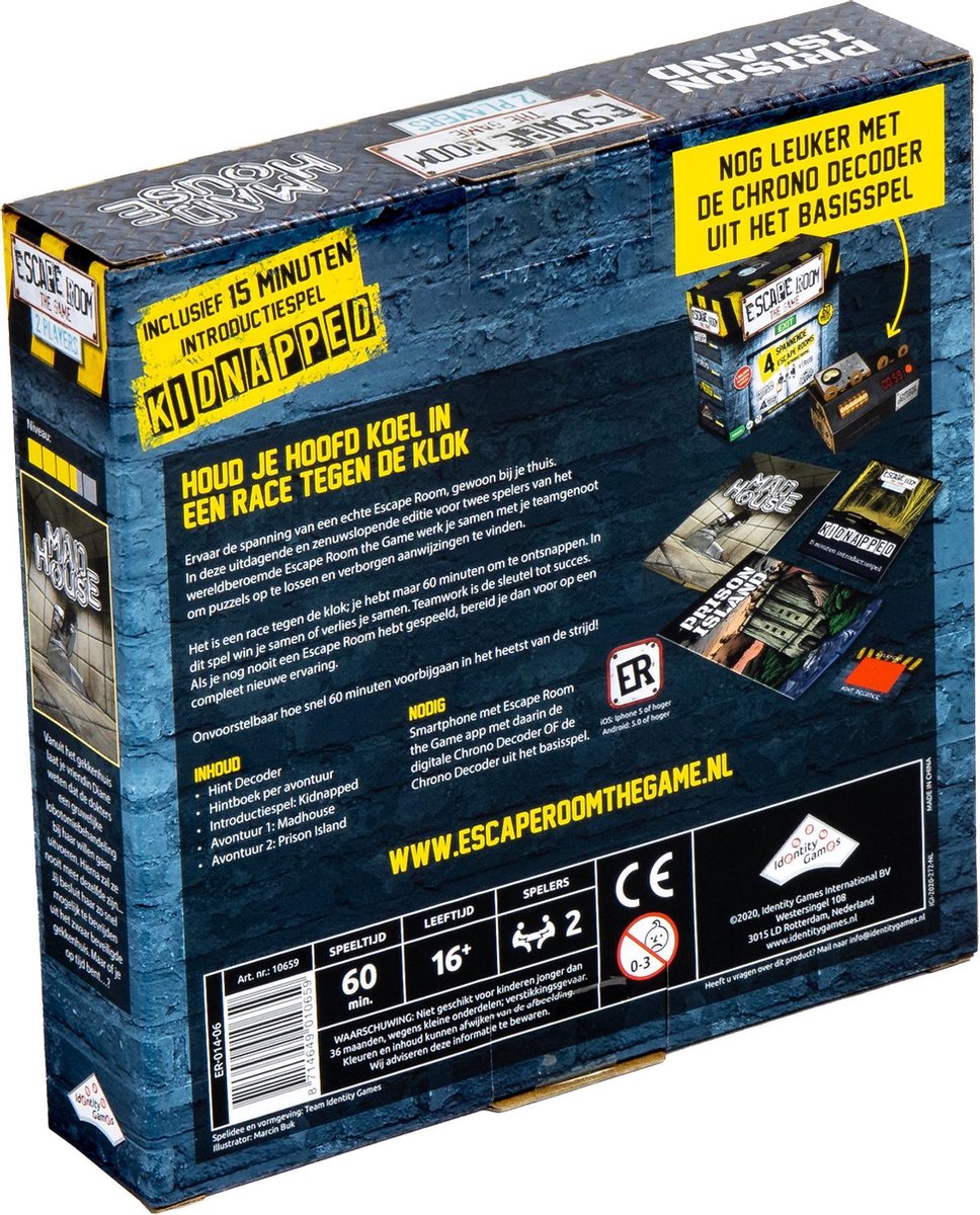 Kraak je hersenen! Teamwork, communicatie, vindingrijkheid, creativiteit, logica en aandacht voor details staan centraal in dit spannende spel. Lukt het jou om binnen de tijd te ontsnappen?