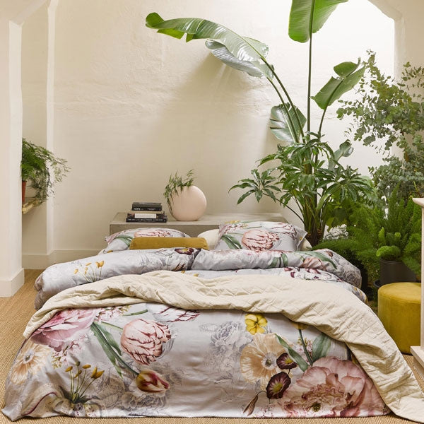Essenza Aimee Mist grey dekbedovertrek katoensatijn 210TC tulpen