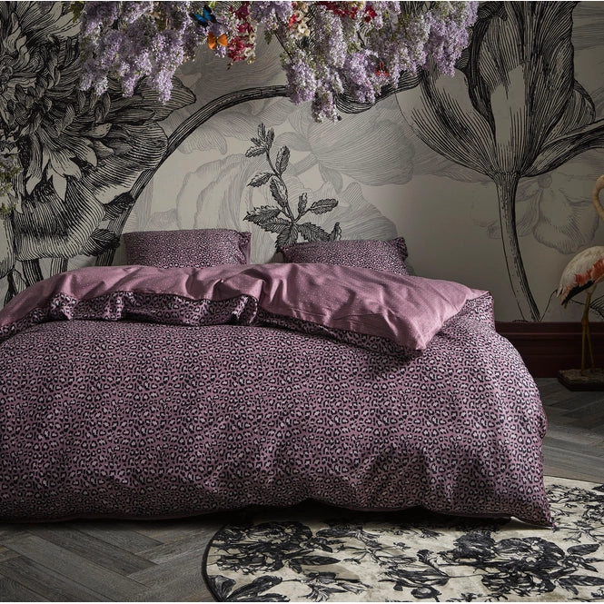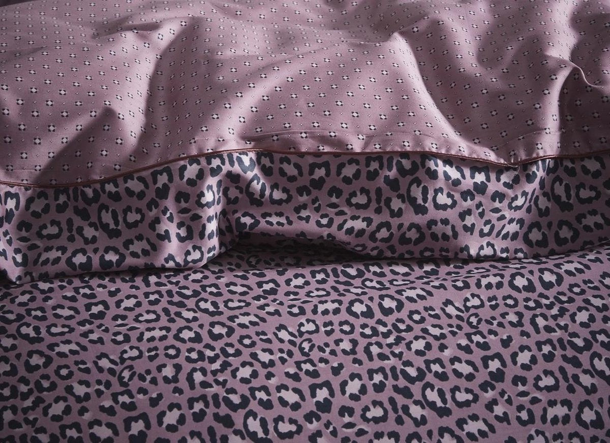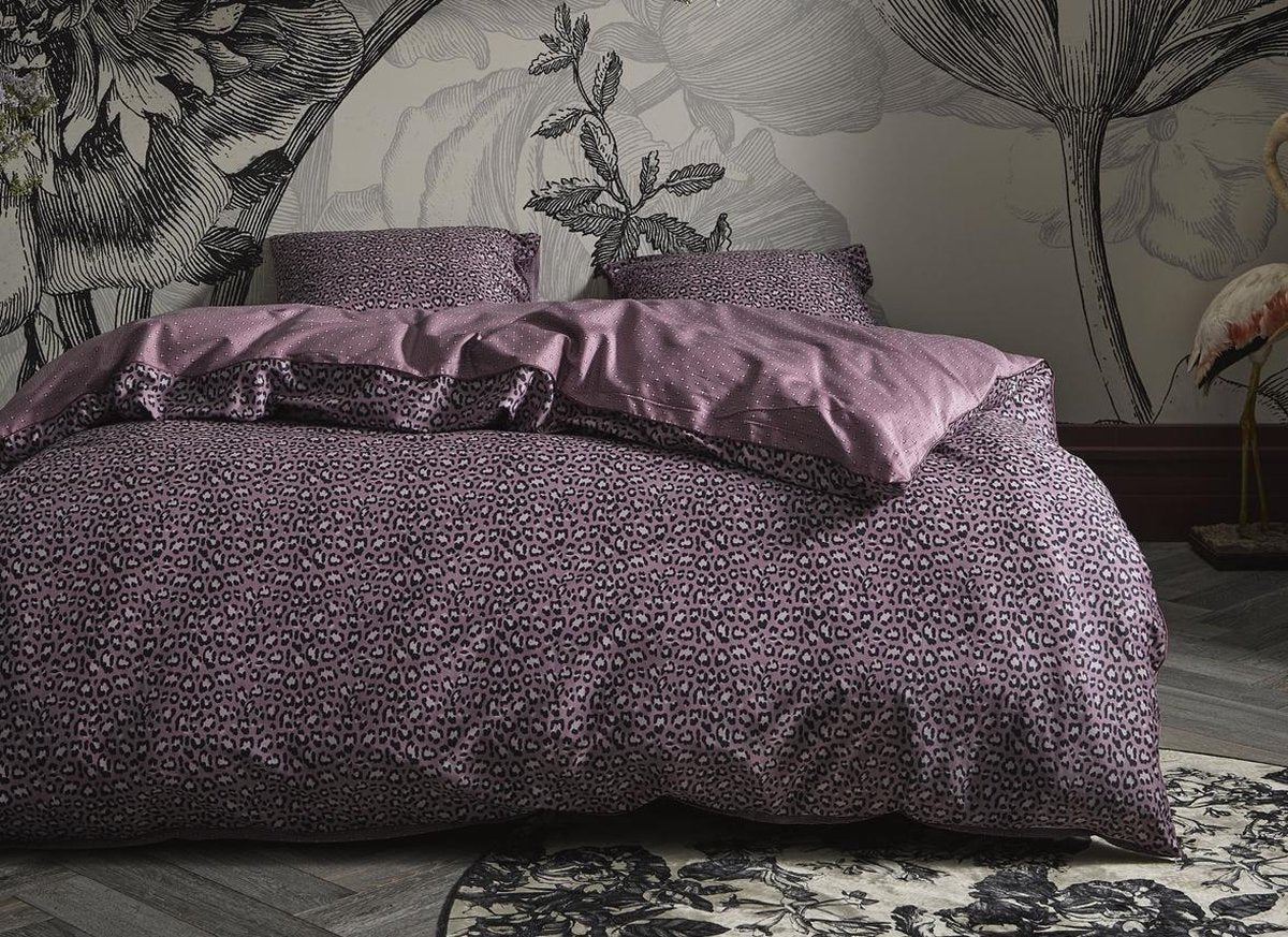 Essenza Bory Lilac dekbedovertrek katoensatijn 220TC luipaardprint, leopard