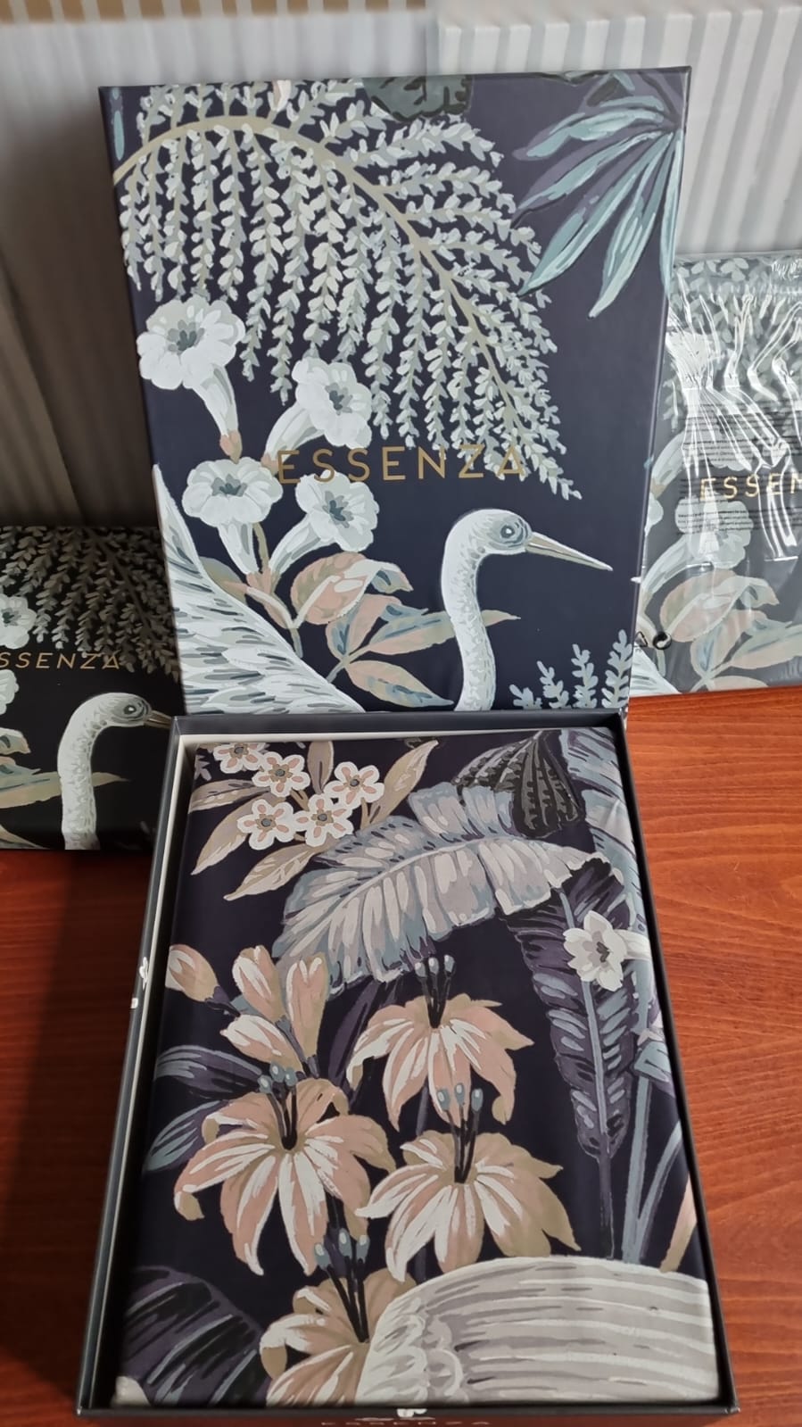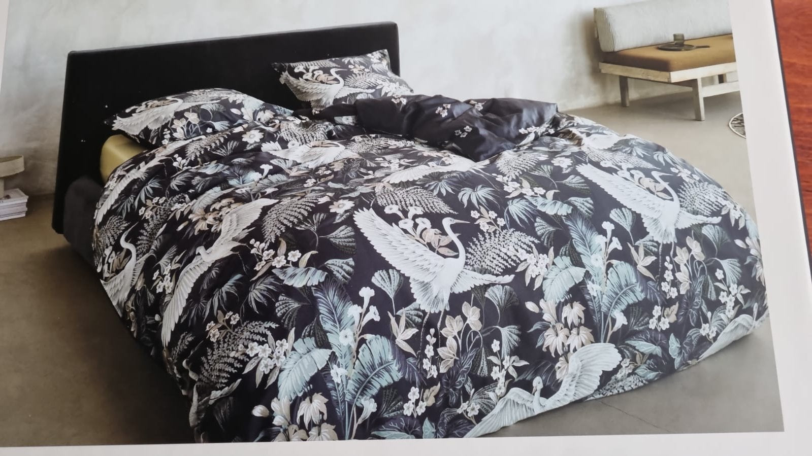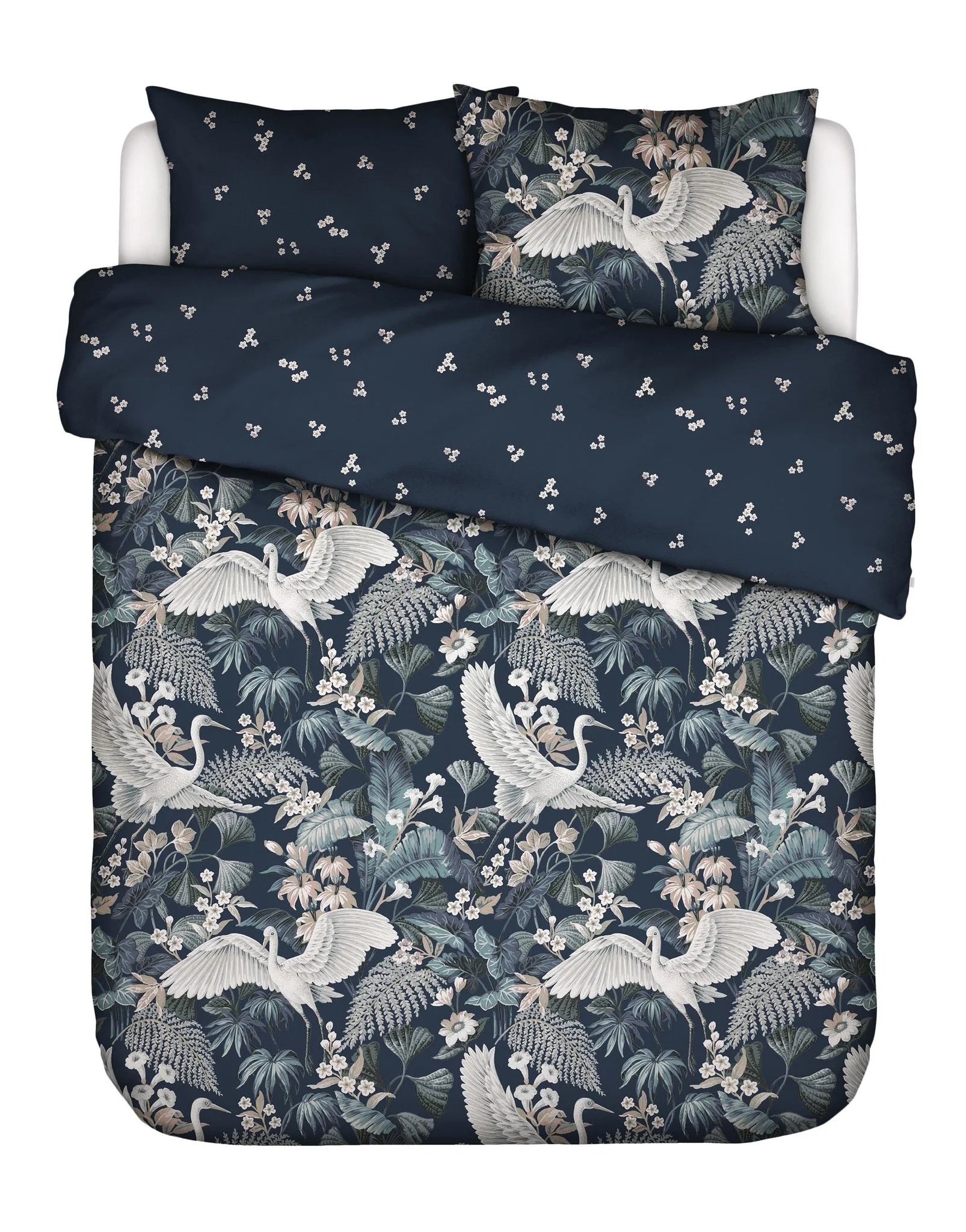 Essenza Diem Nightblue dekbedovertrek katoensatijn 300TC kraanvogels, cranes, grues