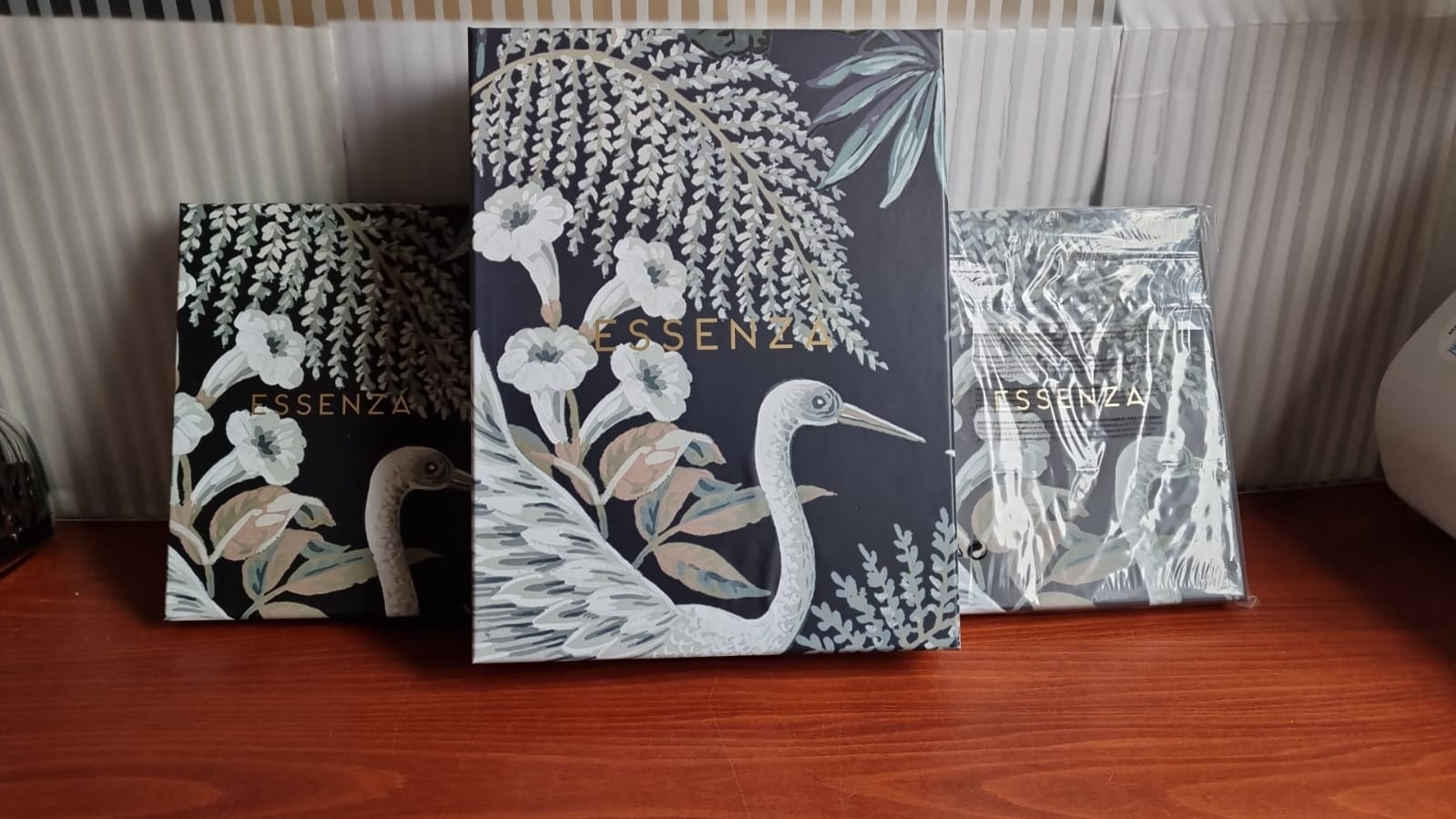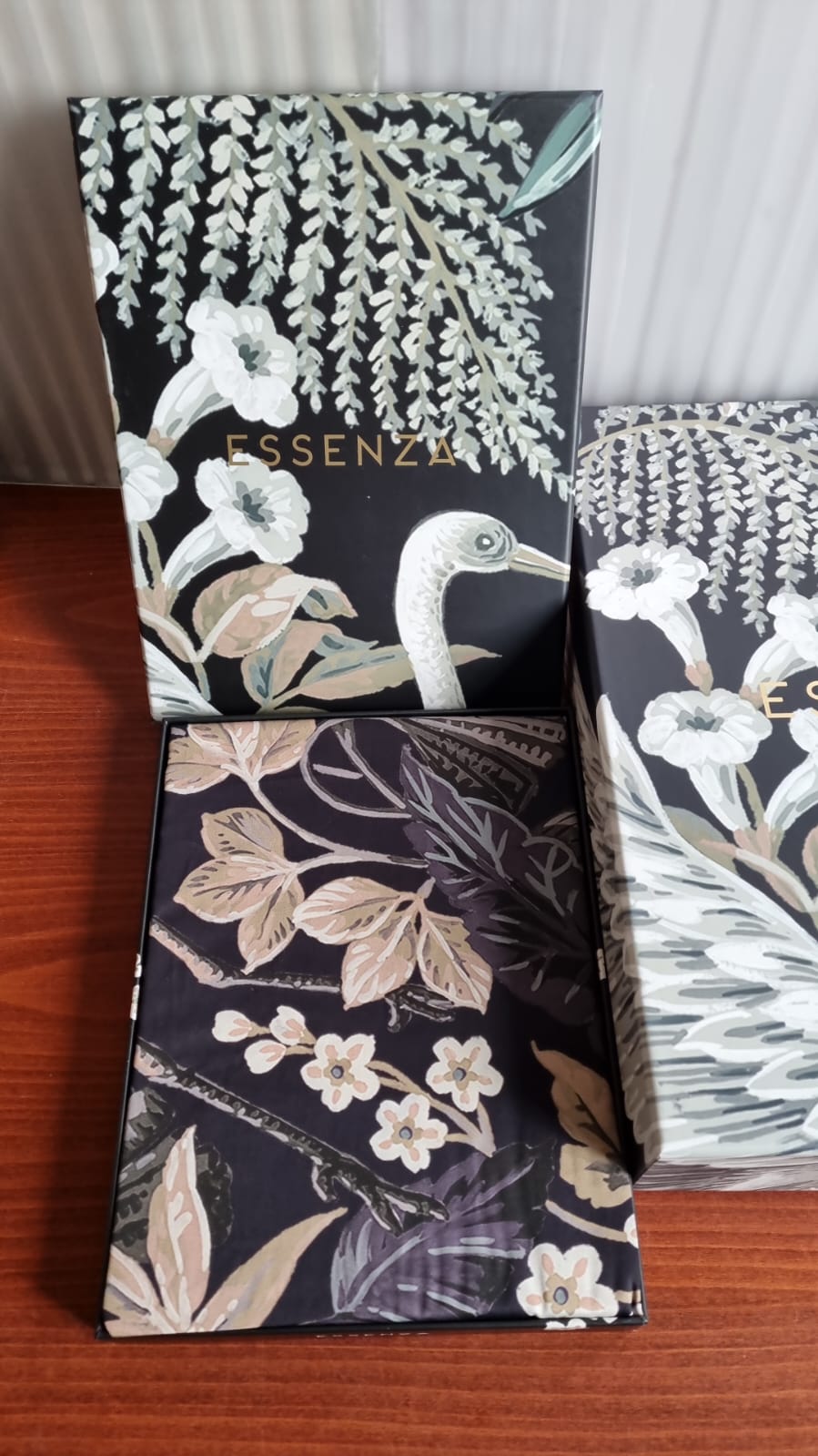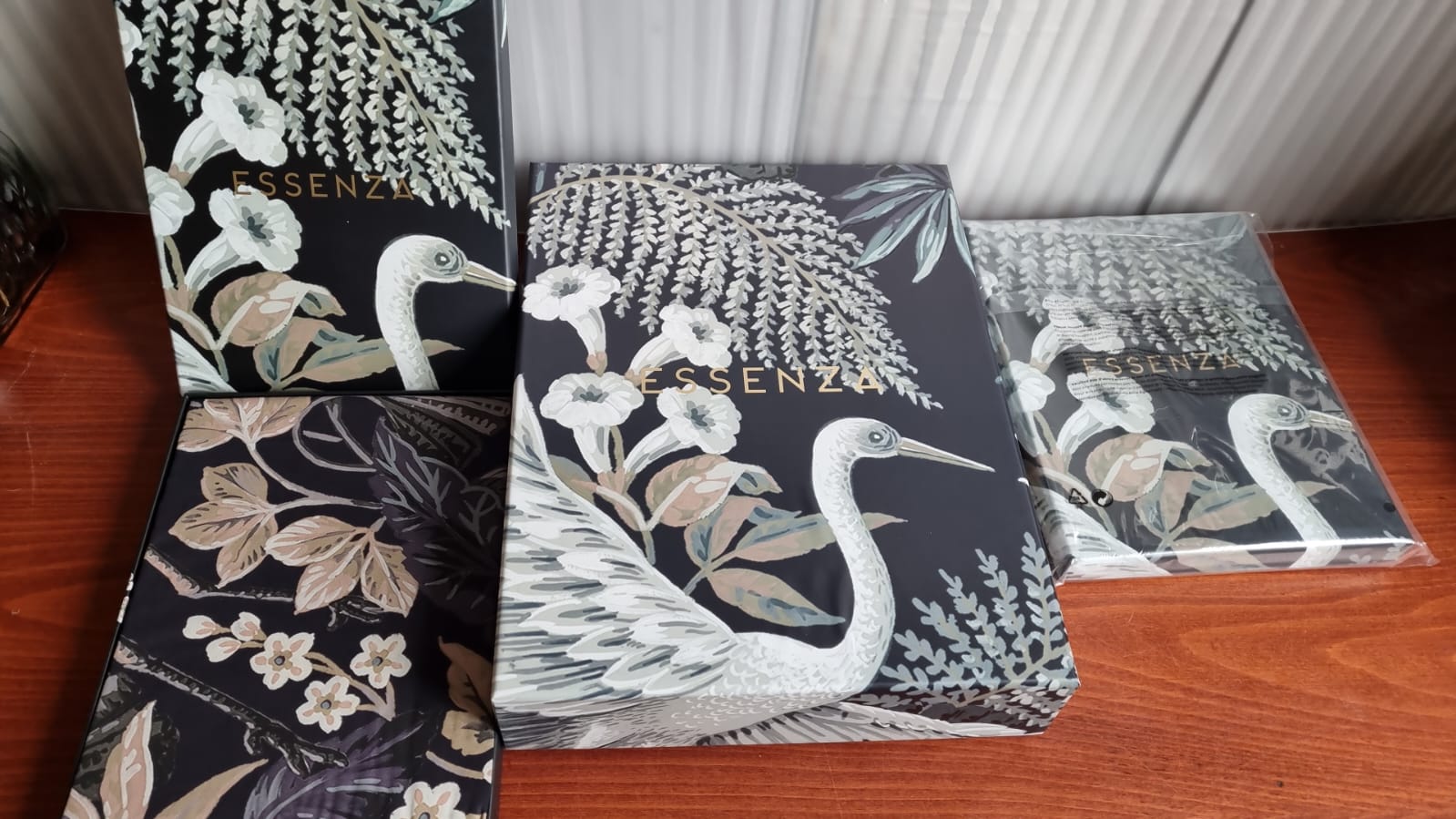 Essenza Diem Nightblue dekbedovertrek katoensatijn 300TC kraanvogels, cranes, grues