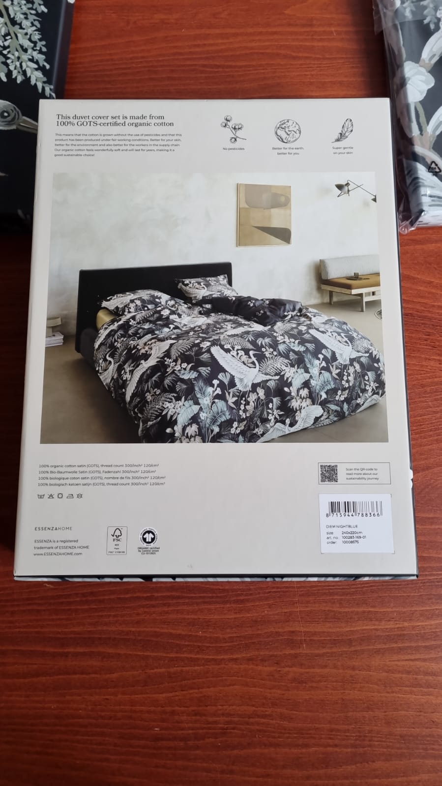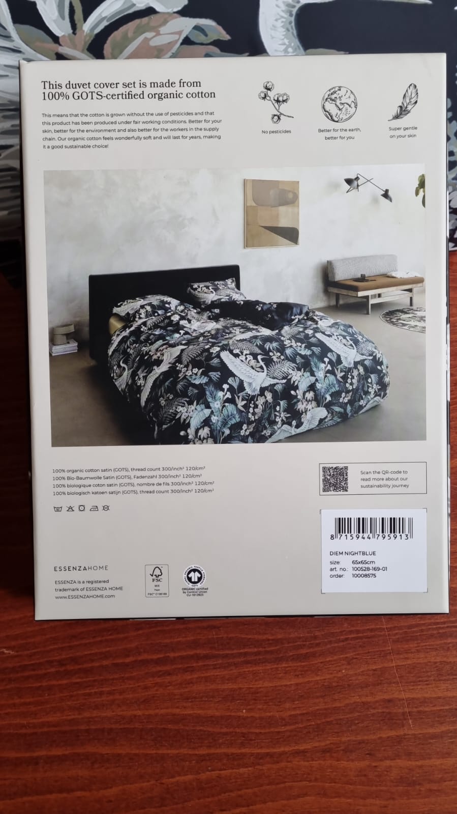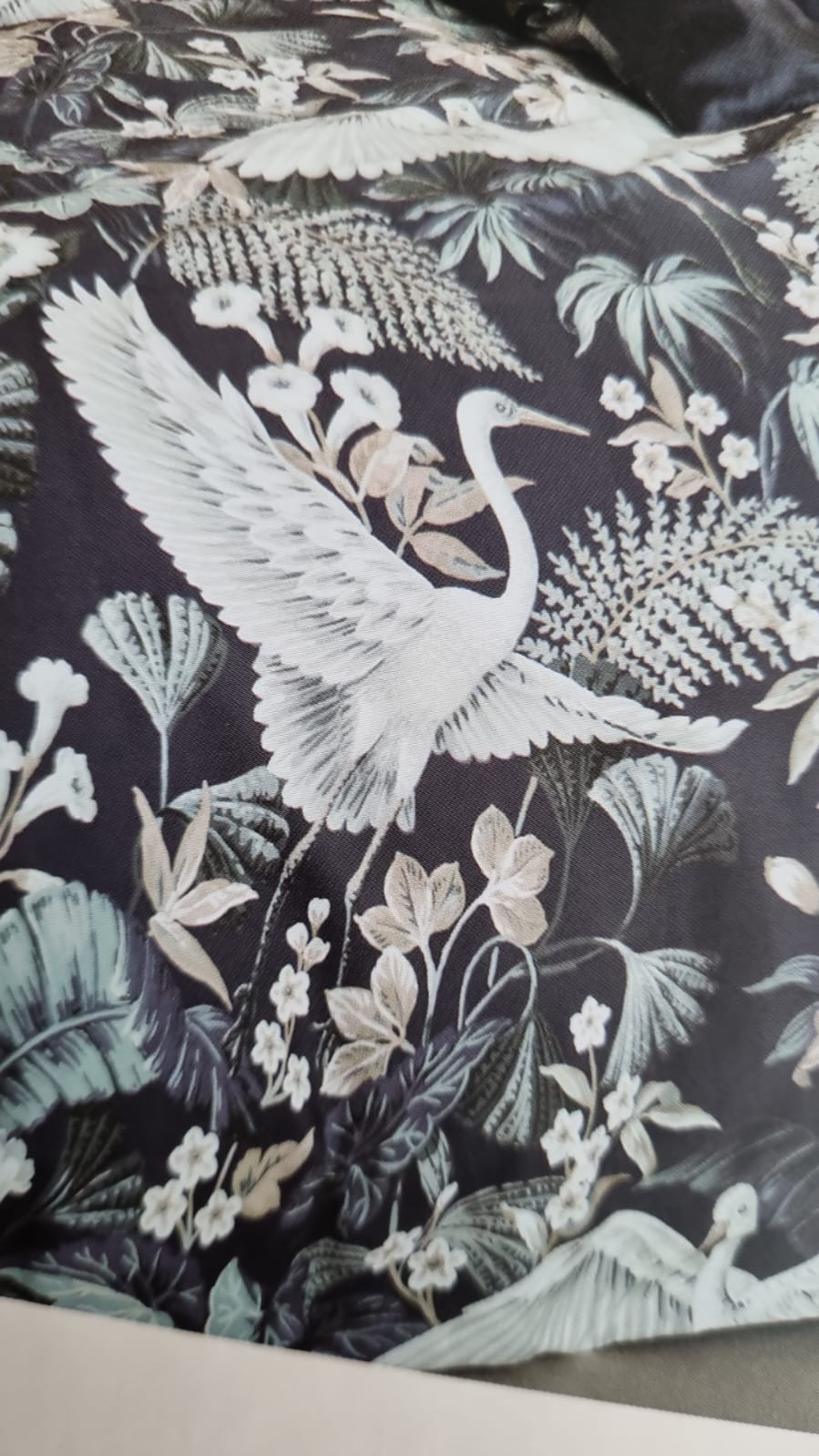 Dekbedovertrek Diem is een heuse showstopper. De print is zo sprookjesachtig mooi, je blijft er naar kijken. De varens en kraanvogels op de nachtblauwe achtergrond maken dat deze print magisch en mysterieus tegelijk is. Gemaakt van 100% GOTS gecertificeerd katoen satijn: duurzaam, glad, zacht en supersterk. Een winnaar in alle opzichten. Katoen satijn is gemaakt van ;100% natuurlijk katoen; 300TC en is daardoor ademend en vocht absorberend. Door de speciale satijnbinding heeft het een lichte glans en voelt het heerlijk zacht aan. Een fluweelzacht, lichtgewicht materiaal met luxe uitstraling dat jarenlang meegaat en het hele jaar door gebruikt kan worden. Een must-have voor de slaapkamer voor zowel warme zomermaanden als koude winternachten.