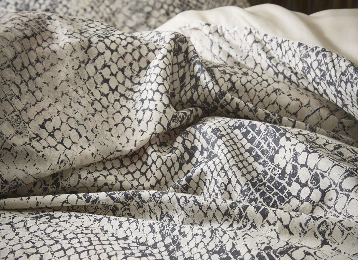 Nederland's trots topmodel Doutzen Kroes was de inspiratie voor deze katoen satijnen kussensloop van Essenza: pittig en elegant tegelijk! Met dit stoere slangenprint dekbedovertrek in zwart-wit spice je je slaapkamer meteen op. De achterzijde van het dekbedovertrek is effen ecru. Deze elegante kussensloop, gemaakt van 100% katoen satijn, is zacht, glad, ademend en lichtglanzend.