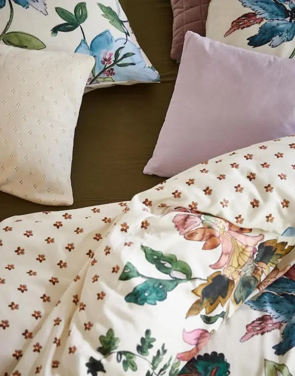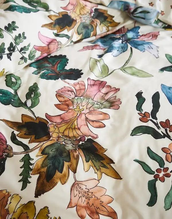 Dekbedovertrek Fauve tovert een instant smile op je gezicht. Met de zwarte silhouetten, die nonchalant met allerlei vrolijke kleuren zijn ingekleurd, ben je helemaal on trend. Wil je iets minder flower power? Sla het dekbedovertrek dan om voor een effen antique white achtergrond bezaaid met kleine bruine handgetekende bloemetjes. Het dekbedovertrek is gemaakt van 100% katoen satijn en dat is zacht, glad en heeft een klein glansje.