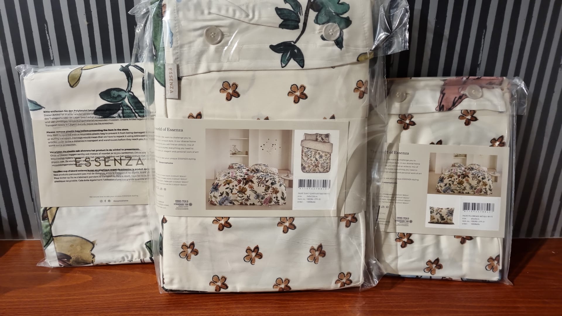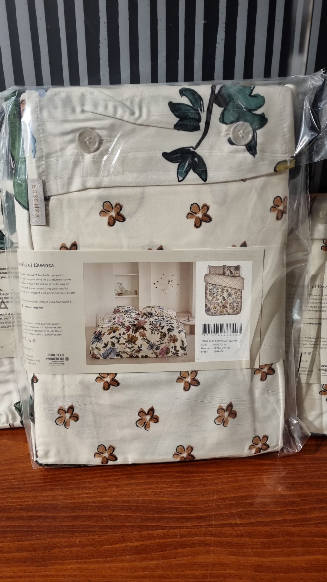 Essenza Fauve antique white dekbedovertrek katoensatijn 215TC flower power