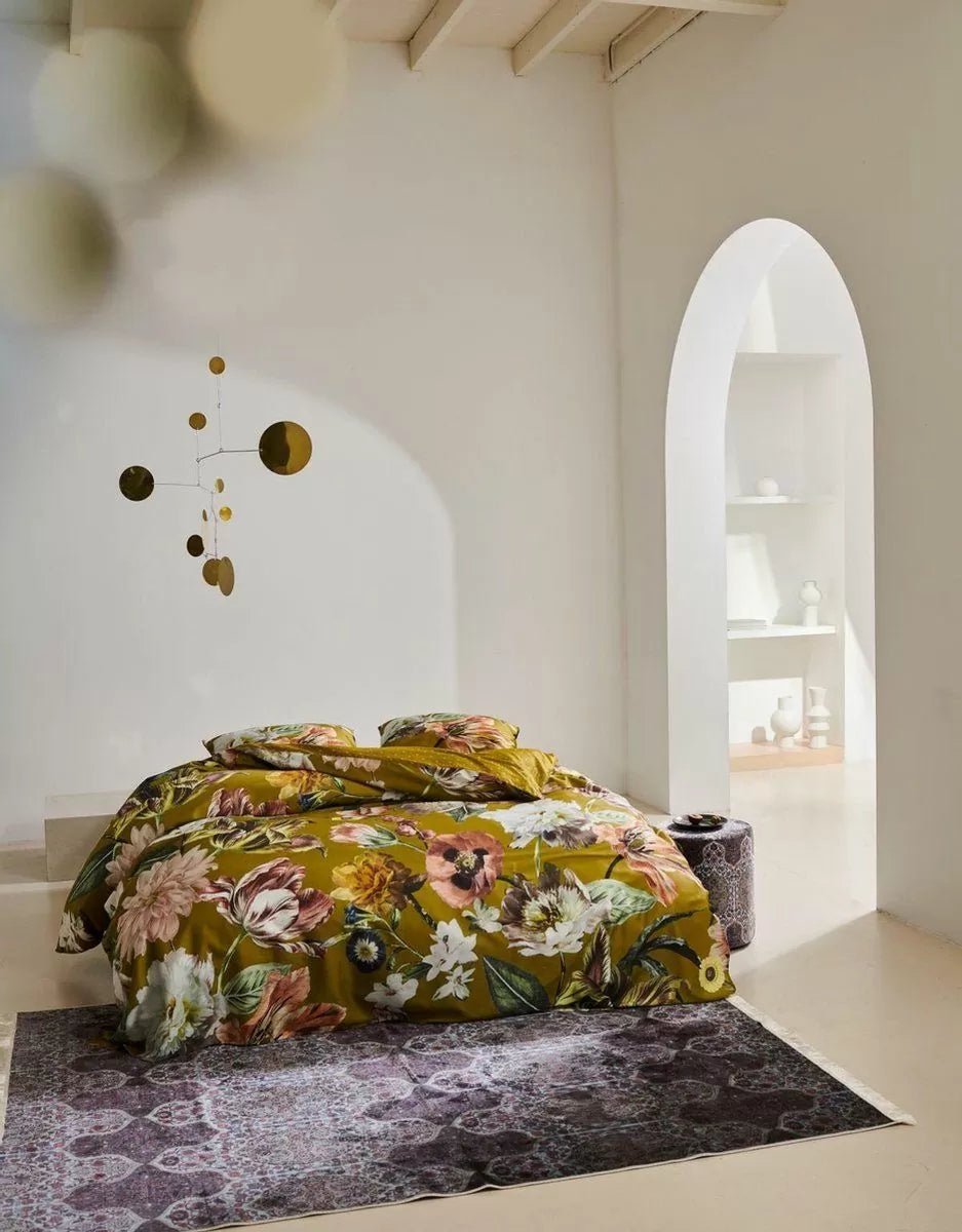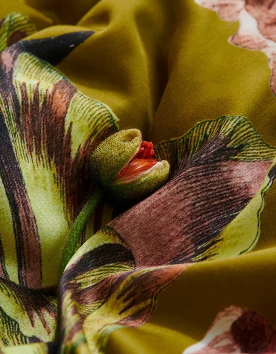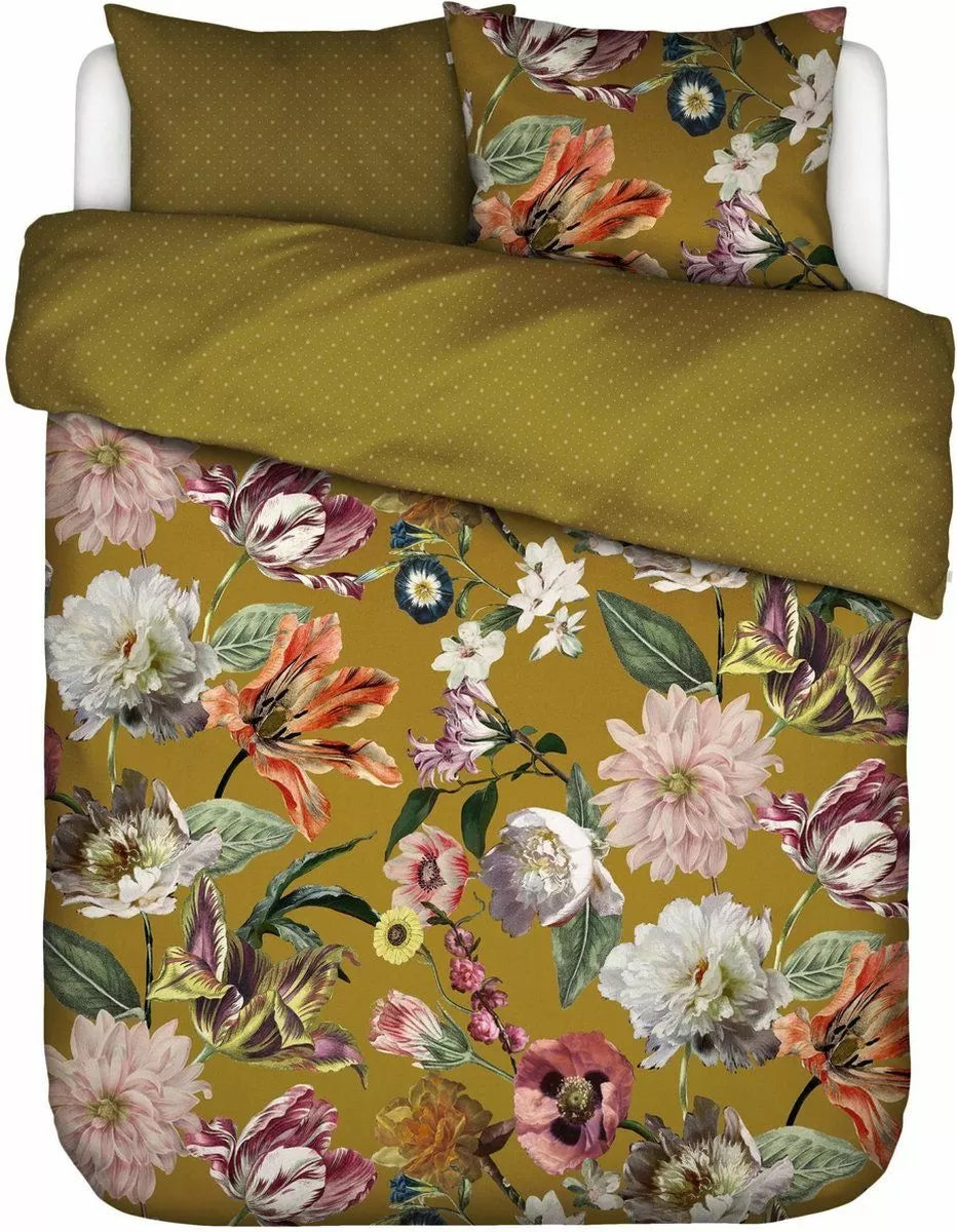 Essenza Filou Olive katoensatijn 200TC dekbedovertrek bloemen