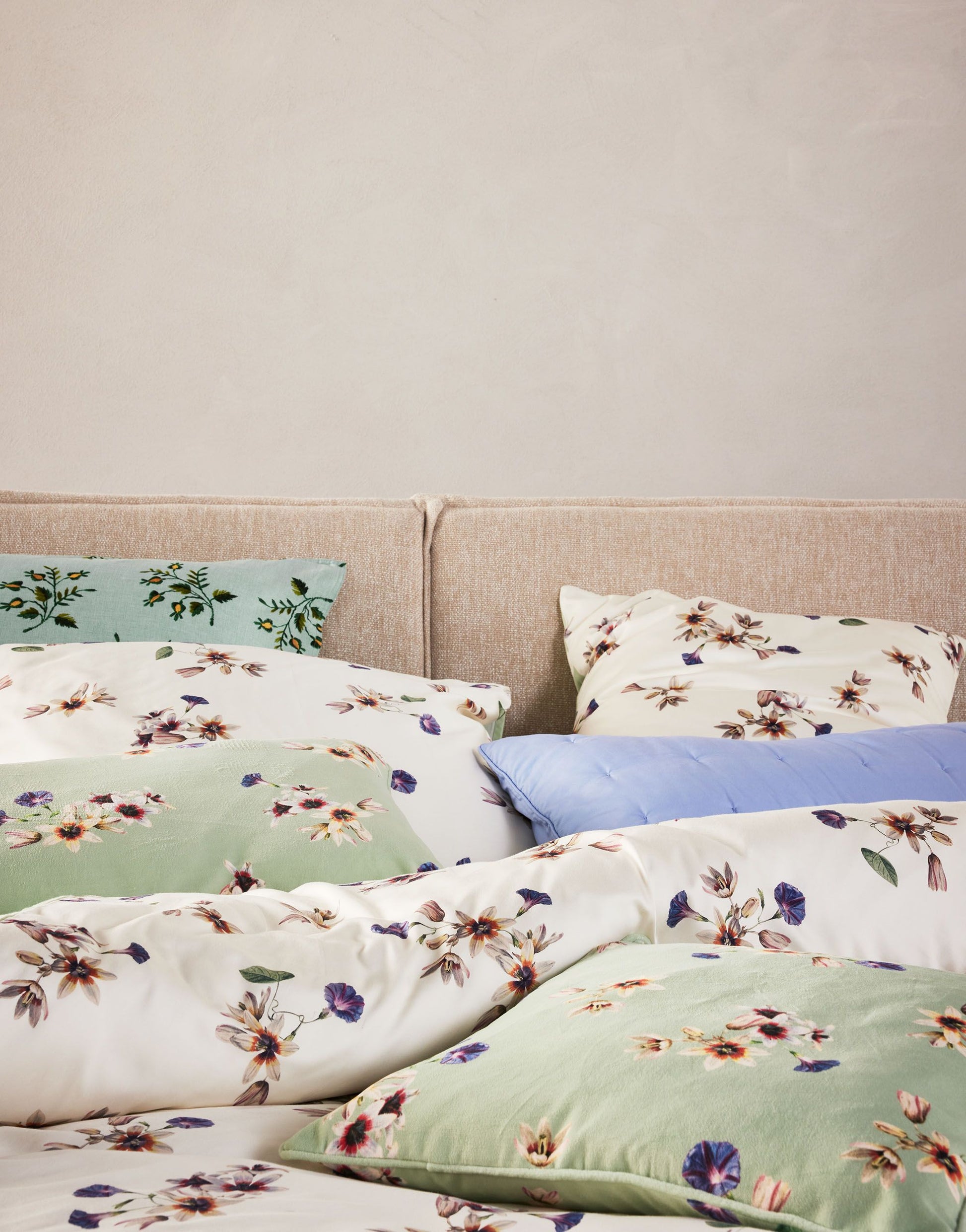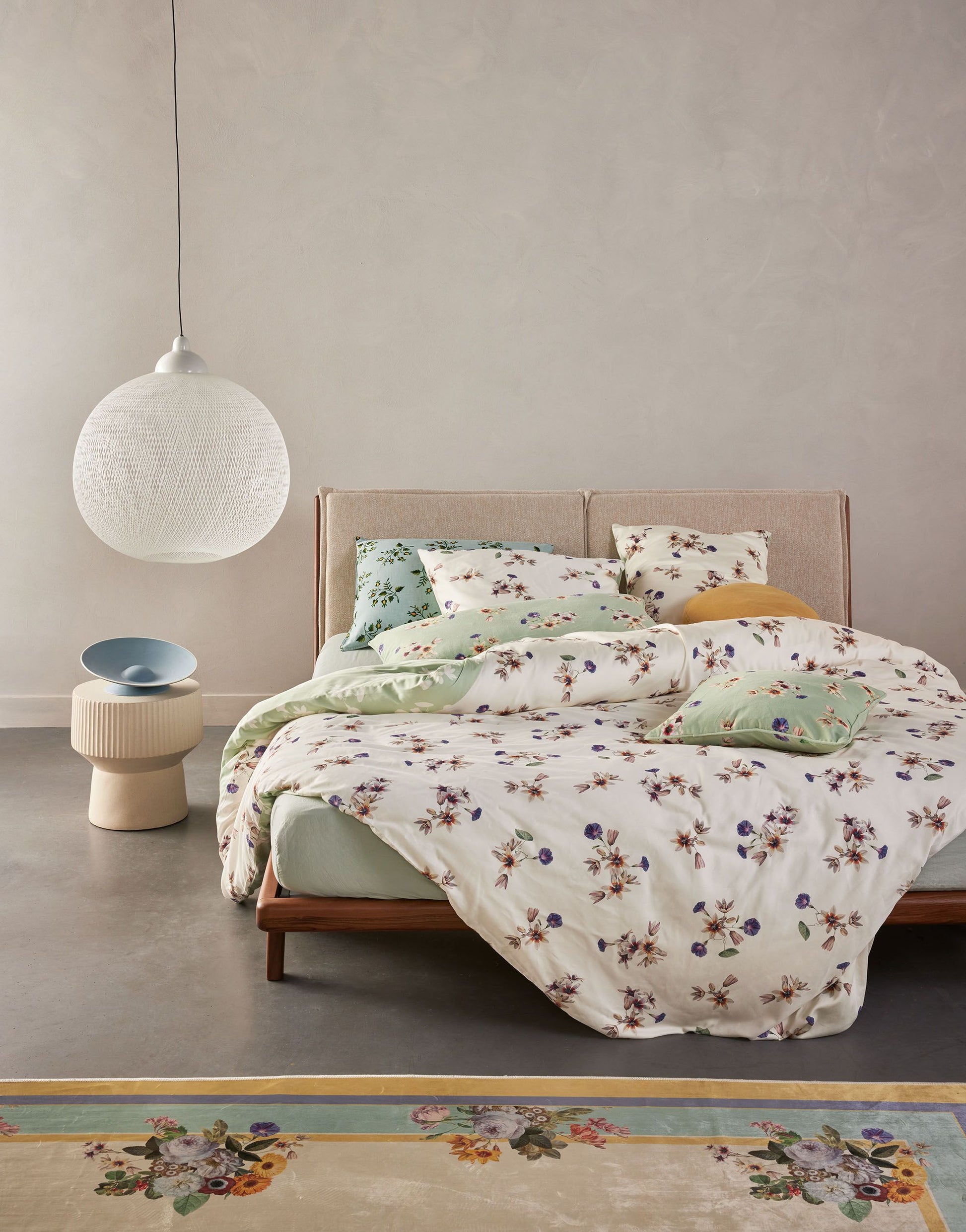 Omarm de nacht met dekbedovertrek Fiora. De Fiora print toont een sierlijke verzameling van bloemen op een zacht gekleurde ondergrondkleur, geïnspireerd door twee tekeningen van Eelke Jelles Eelkema uit de vroege 19e eeuw. Deze verfrissende compositie combineert de charmante Ixea bloem en de weelderige dagwinde tot een levendige zomerse bloemenprint. De stervormige Ixea bloemen, met hun kleurrijke kernen die vlinders aantrekken, vormen een levendig contrast met de weelderige paarse dagwinde die de zomer omarmt met een overvloed aan bloemen. Keer dekbedovertrek Fiora om voor een nieuwe beleving van de print in silhouet op een frisse achtergrond. Gemaakt van katoen satijn is dit zonder twijfel onze favoriete stof voor op bed. Katoen satijn is 100% natuurlijk katoen en heeft dus ook de fijne eigenschappen van katoen: het ademt en is vocht absorberend. Een katoen satijnen dekbedovertrek voelt echter veel zachter en gladder aan dan een regulier katoenen dekbedovertrek door de speciale satijnweving waardoor de stof licht gaat glanzen. Dit voelt dus niet alleen luxe, maar ziet er ook luxe uit.