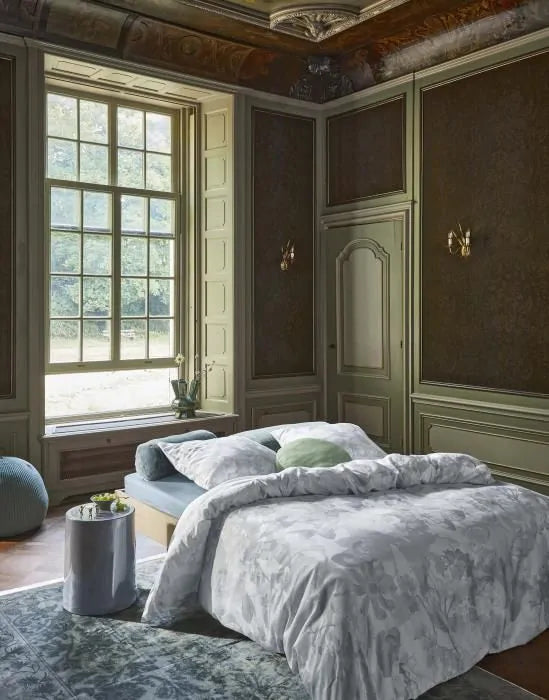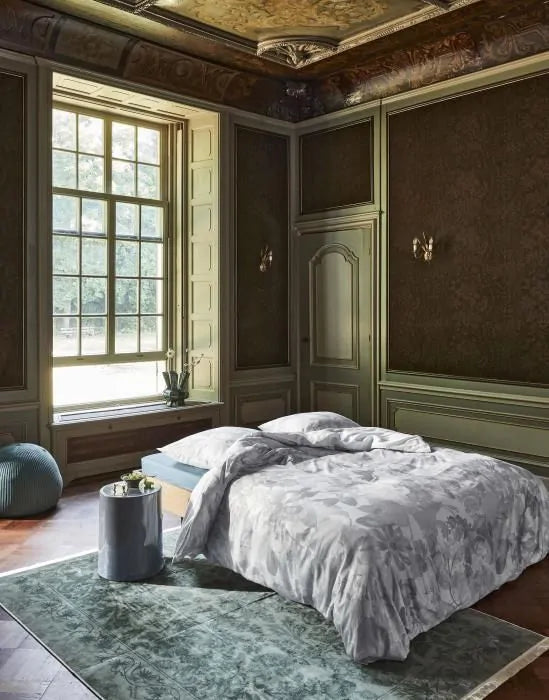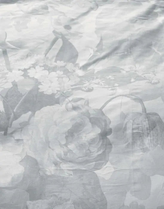 De Floor is een afgeleide van de bestsellerprint Fleur, maar dan uitgevoerd in tonale kleuren. Hierdoor krijg je een prachtige, subtiele en klassieke print die elke slaapkamer een instant chique look geeft. De favoriete bloemdessin Fleur in een nieuwe variant. Van een rijk gekleurde print naar stilte en eenvoud. Volledig tone-in-tone opgezet. Waar diepte en vergankelijkheid van de bloemen niet verloren zijn gegaan. Voor een serene sfeer in luxe, dit dessin leent zich goed voor een klassieke maar eigentijdse look in de slaapkamer. De andere kant van dit dekbedovertrek heeft een uni kleur.