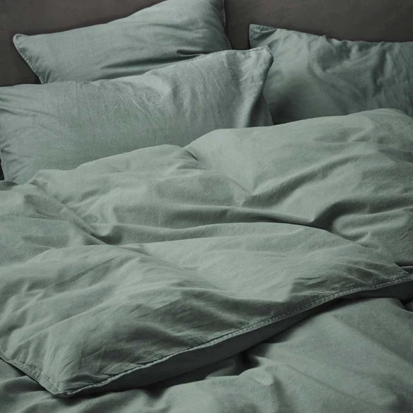 Essenza Guy Sea Green katoenen dekbedovertrek vintage washed