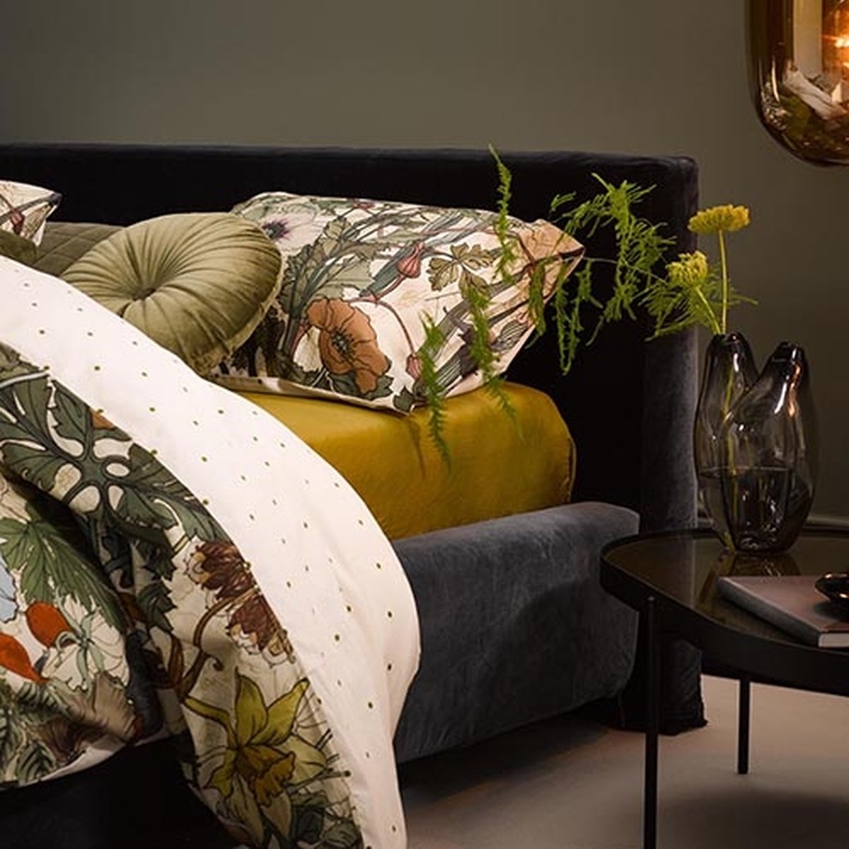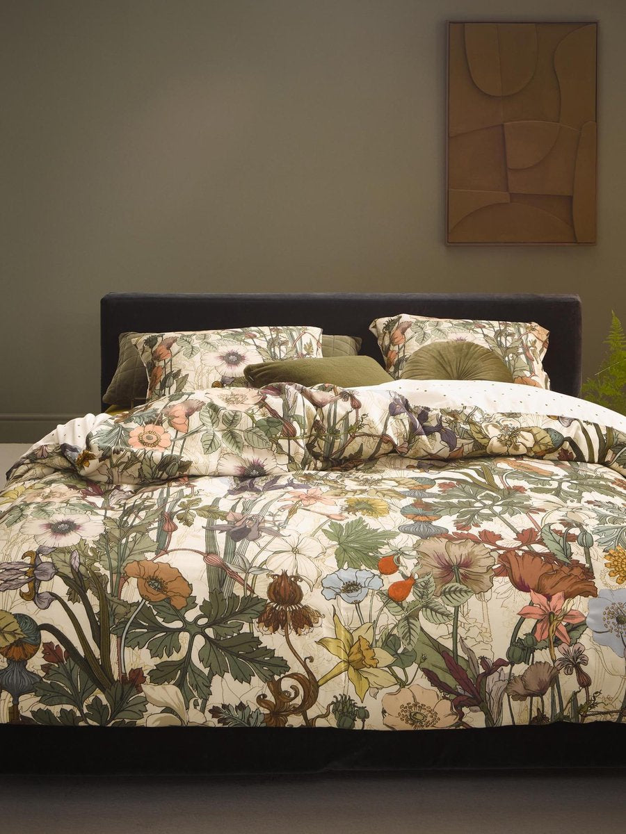 De Marlene is als een bloementuin met al onze lievelingsbloemen, zoals papavers, narcissen en annemonen. Bloemen die zomaar buiten op kunnen duiken en je ontroeren door hun plotselinge aanwezigheid. Dit gevoel heeft ESSENZA gevangen in de Marlene met een prachtig zachte achtergrond. De andere kant van het dekbedovertrek is gestipt, waardoor deze klassiek ogende bloemenprint een moderne twist krijgt. Het dekbedovertrek is gemaakt van katoen satijn en dat betekent: heerlijk slapen onder een zachte, gladde stof met een lichte glans die je laat dromen van weelderige bloemenvelden.