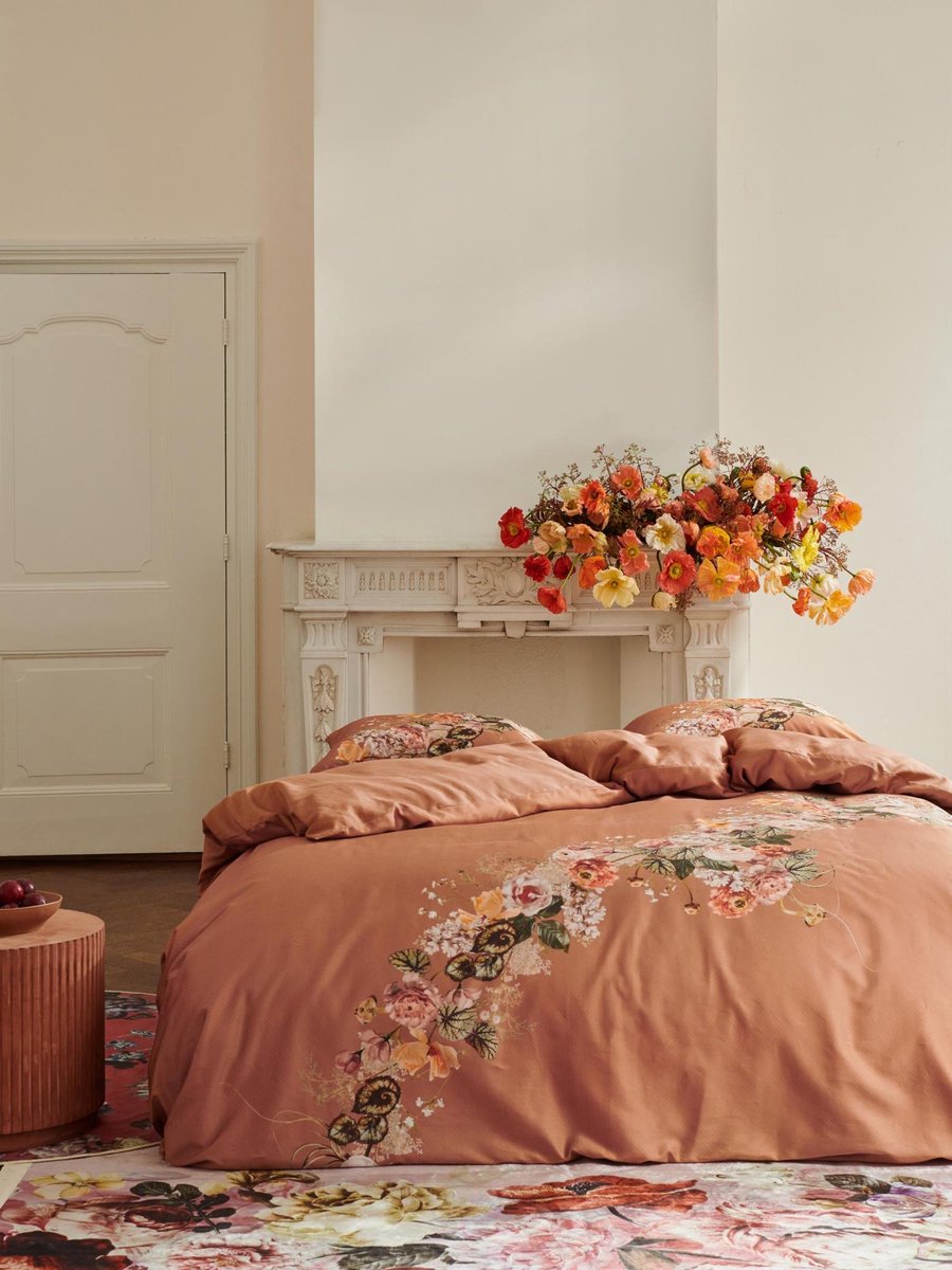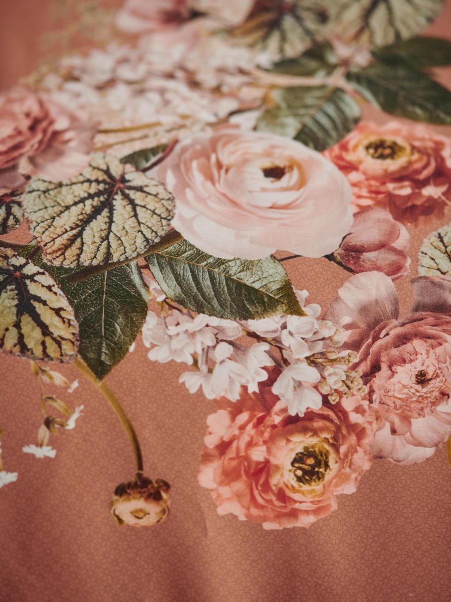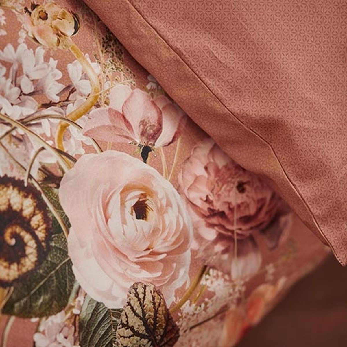 Speelsheid speelt de hoofdrol bij ons Masha dekbedovertrek. De bloemenslinger met verschillende soorten volumineuze rozen en lieflijke witte koekoeksbloemetjes loopt schuin over het overtrek met licht grafisch printje en maakt van al je dromen een feestje. De andere zijde bevat enkel de effen kleur met licht grafische print, waardoor de bloemenslinger haar welverdiende aandacht behoudt. Het zachte katoen satijn zorgt voor een lichte glans en heeft een heerlijk ademende kwaliteit.