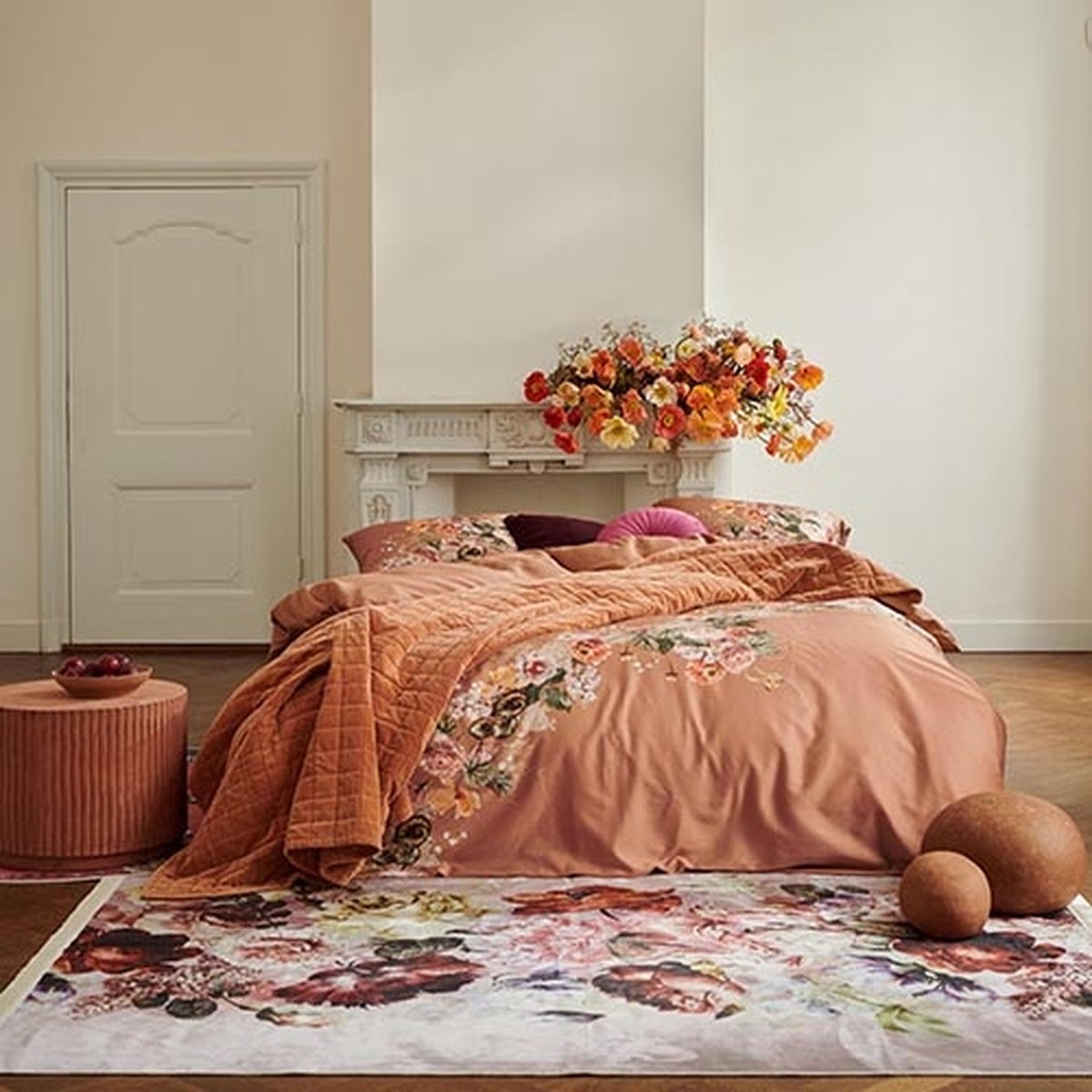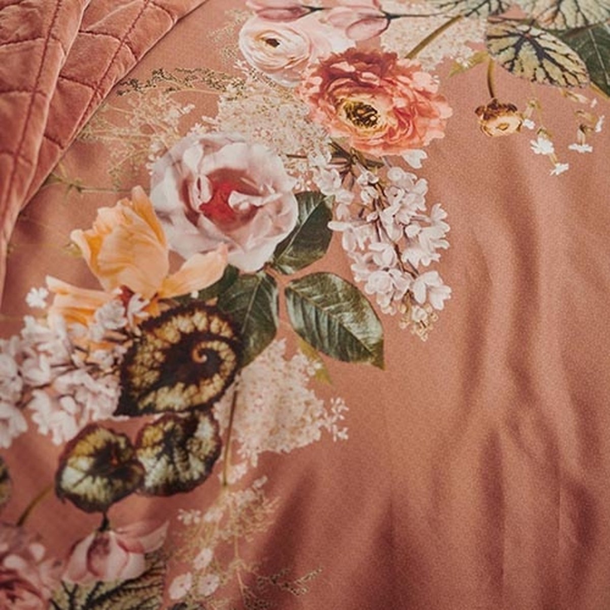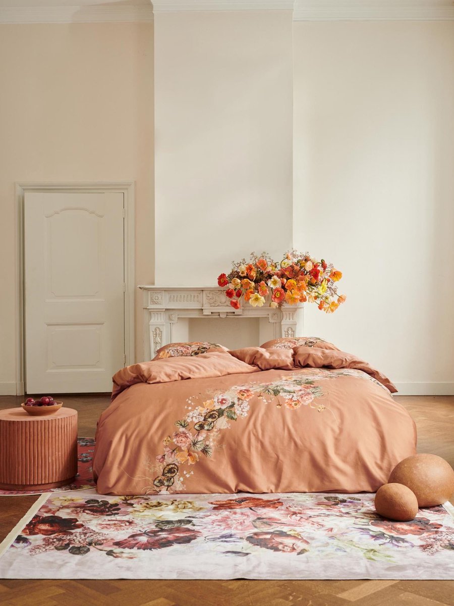 Speelsheid speelt de hoofdrol bij ons Masha dekbedovertrek. De bloemenslinger met verschillende soorten volumineuze rozen en lieflijke witte koekoeksbloemetjes loopt schuin over het overtrek met licht grafisch printje en maakt van al je dromen een feestje. De andere zijde bevat enkel de effen kleur met licht grafische print, waardoor de bloemenslinger haar welverdiende aandacht behoudt. Het zachte katoen satijn zorgt voor een lichte glans en heeft een heerlijk ademende kwaliteit.