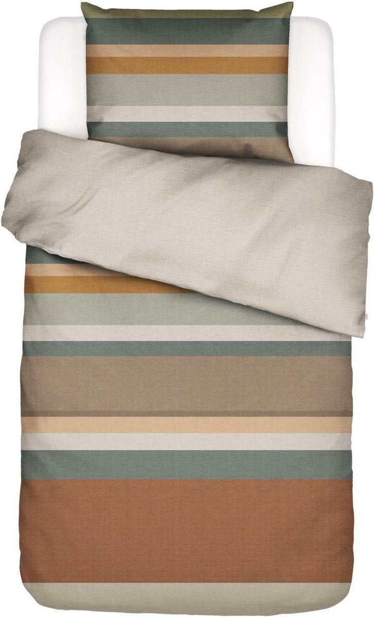 Zachtgroen vormt de basis van deze stoere print, afgewisseld met horizontale strepen in lichtgrijs, zonnig oranje, zalmroze, prachtig blauw en verschillende tinten roodbruin. Liever een streeploze look? Dat kan ook. De achterzijde van de Wedith heeft namelijk een chique uni crèmekleurige tint. Het dekbedovertrek is gemaakt van zijdezacht katoen satijn, wat net dat subtiele glansje geeft en waar je heerlijk onder slaapt.