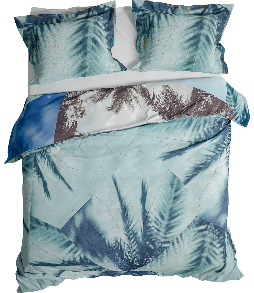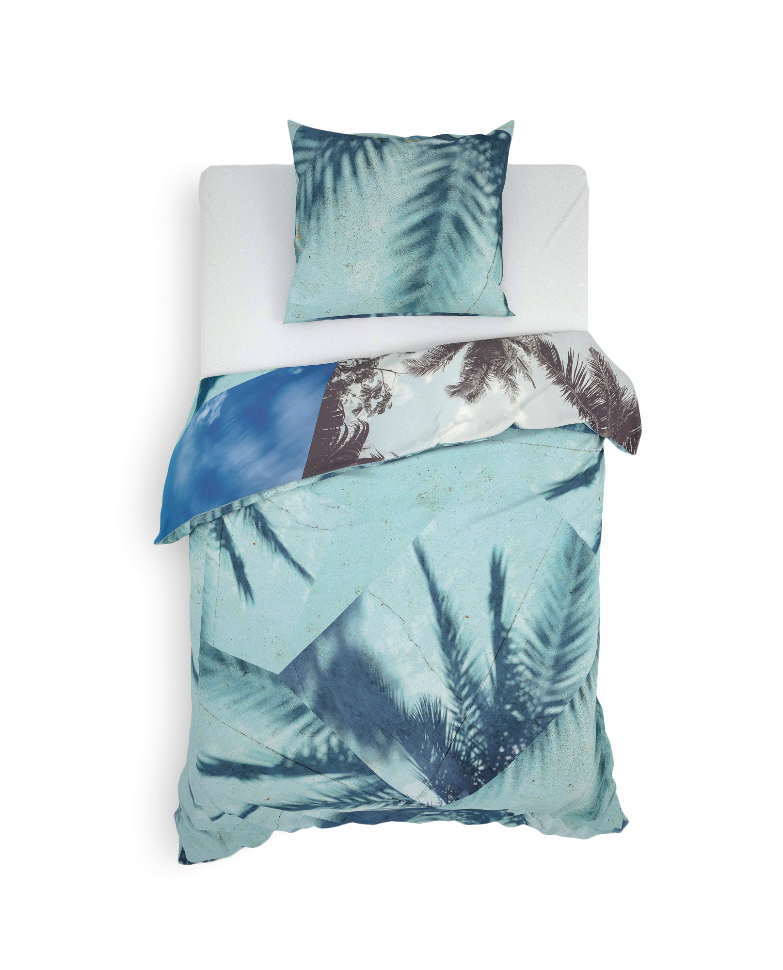 Het dessin vol met blauwe luchten en prachtige palmbomen geeft jouw slaapkamer een instant summer vibe. De achterzijde van het blauwe beddengoed is voorzien van een design met grafische lijnen en close-ups van palmbladeren. De bijpassende kussenslopen in blauw zijn net als het dekbedovertrek aan beide kanten te gebruiken waardoor jij eindeloos kan variëren. Never a dull moment!