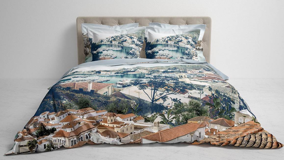 Droom heerlijk weg onder het Nada dekbedovertrek van Heckettlane. Wordt wakker en geniet van een prachtig uitzicht over een baai vol boten en een terracotta gekleurd stadje. Even lijkt het alsof je echt op vakantie bent en dit adembenemende vergezicht hebt. Of draai het overtrek om en geniet van een zeilboot in het azuurblauwe water omringt door mooie rotsen. Geniet van de stilte om je heen. Ook de kussenslopen zijn voorzien van beide prints en afgewerkt met een Oxford rand.