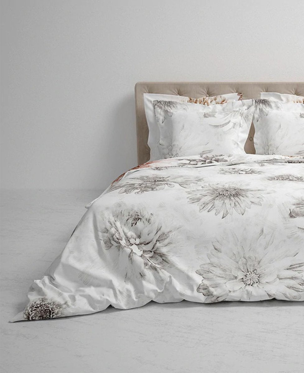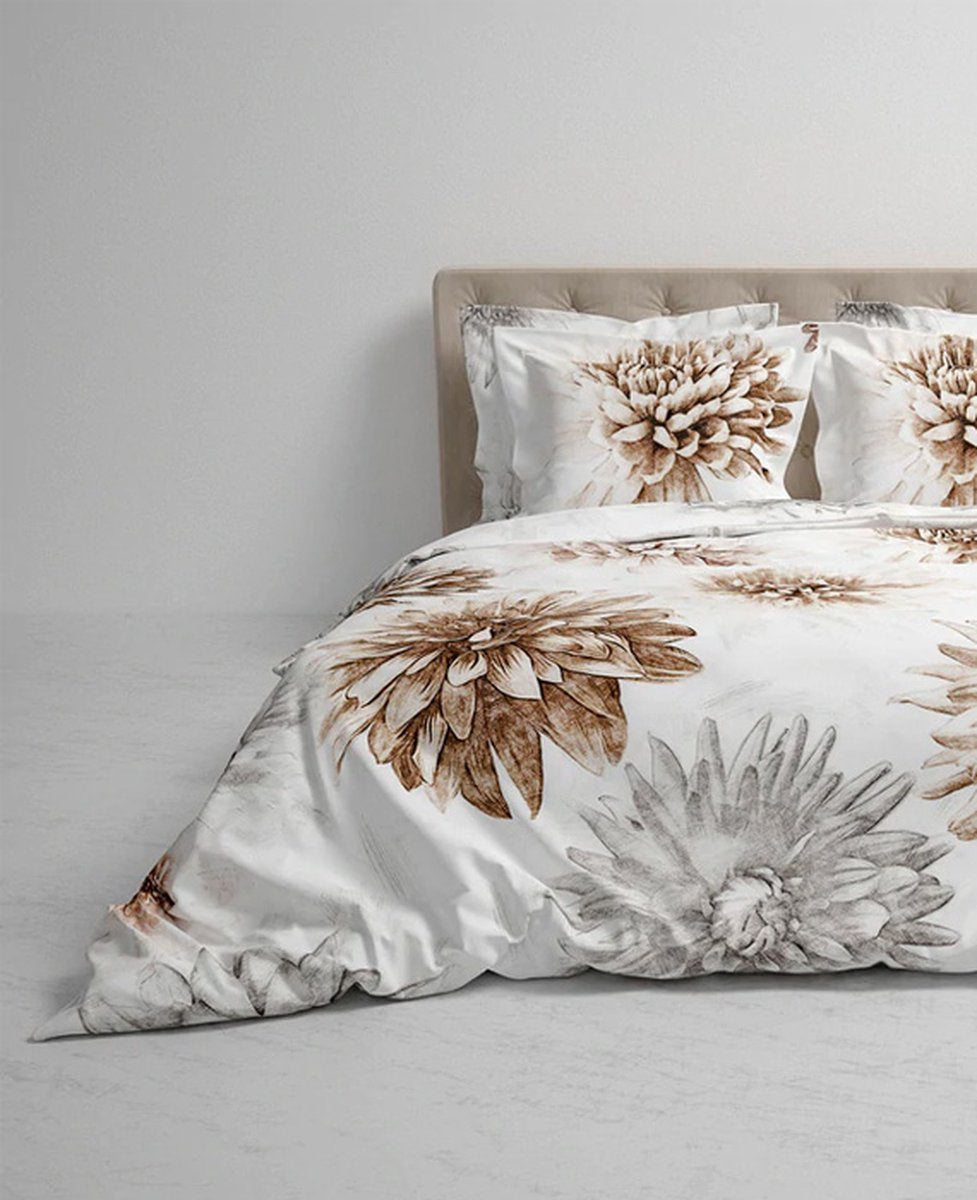 Het Dairis dekbedovertrek van Heckettlane heeft een bloemenprint met een vintage randje. De getekende print bestaat uit grote Dahlia bloemen in een neutraal kleurenpalet. Fijne potlood krassen op de ondergrond versterken de handgetekende uitstraling. Door het gebruik van bruin, wit, beige en taupe past het overtrek perfect in een landelijk interieur. Op de achterkant staat hetzelfde bloemendessin, maar dan in grijstinten. Ook op de kussenslopen komen beide dessins terug. Daarnaast zijn ze afgewerkt met een Oxford rand. Heckettlane heeft voor het Dairis overtrek gebruik gemaakt van 100% katoen-satijn; 230TC. Hierdoor hebben de getekende bloemen een extra chique uitstraling. Dankzij de speciale satijnbinding krijgt het hoogwaardige materiaal een mooie glans. Katoen-satijn is ook met meer en fijnere draden geweven waardoor het extra zacht en soepel aanvoelt. Daarnaast heeft het dezelfde ademende en vochtabsorberende eigenschappen als katoen wat bijdraagt aan jouw slaapcomfort. De onderzijde is afgewerkt met een dubbele doorlopende instopstrook.