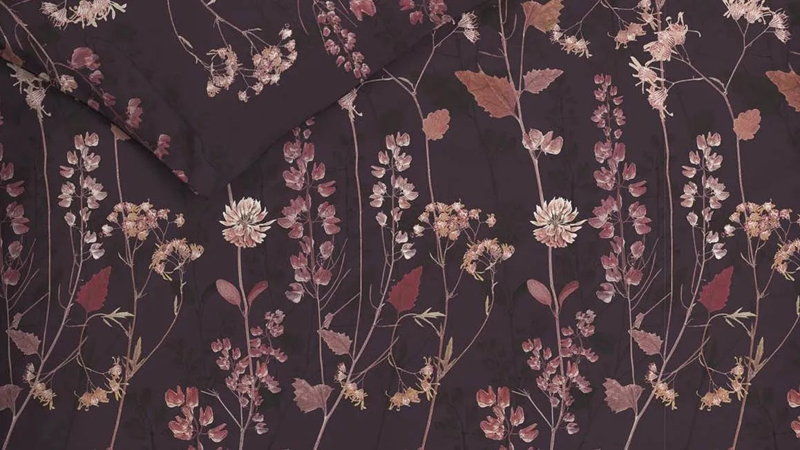 Heckettlane Revi Raisin wijnrood dekbedovertrek droogbloemen flanel