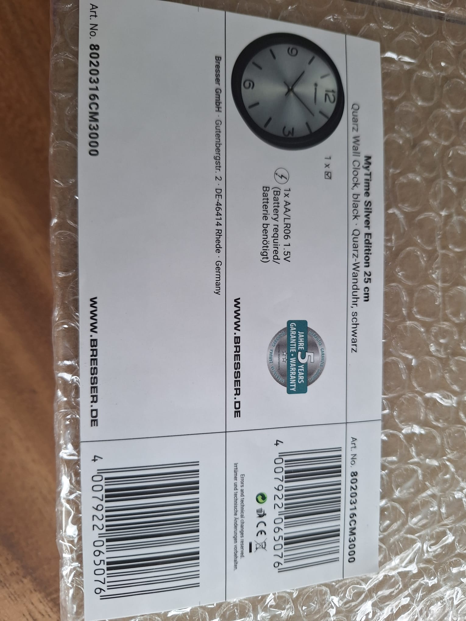 Leveringsomvang: 1x wandklok, 1x handleiding