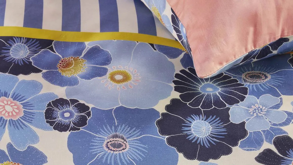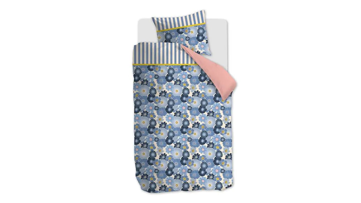 Oilily Nica dekbedovertrek katoensatijn 200TC blauwe aquarelbloemen retro