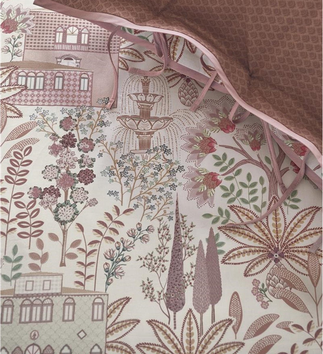 Pip Studio Casa Di Pip Offwhite percal 200TC dekbedovertrek Italiaanse huizen, vijgenbomen en fonteinen