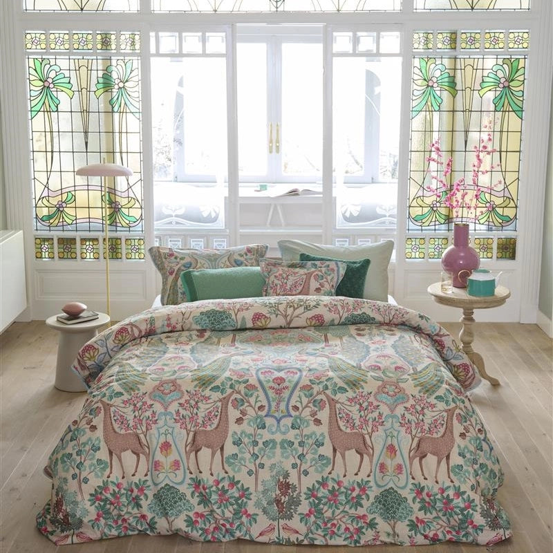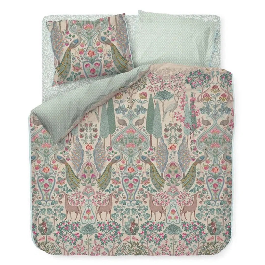 Pip Studio Pavoni offwhite percal 200TC dekbedovertrek gespiegeld patroon pauwen, herten, bomen