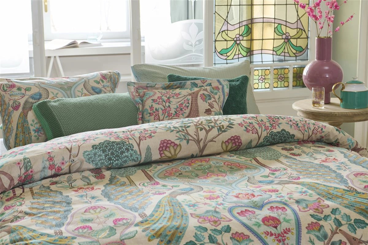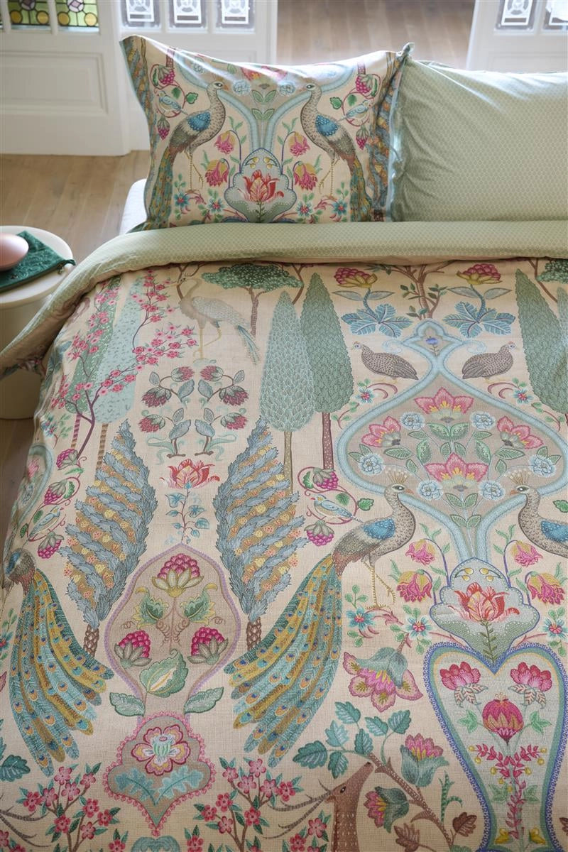 Dit prachtige dekbedovertrek van Pip Studio is een echte eyecatcher voor uw slaapkamer. Met het Pavoni dessin, dat een gespiegeld patroon van sierlijke pauwen, bloemen en gedecoreerde bomen heeft, creëert u een luxueuze en speelse uitstraling. Het gebruik van 100% katoenpercal zorgt ervoor dat het overtrek heerlijk zacht en glad aanvoelt, terwijl de weefdichtheid van 200 TC ervoor zorgt dat de stof lang mooi blijft. Dankzij de dubbele instopstrook over de gehele breedte is het overtrek eenvoudig op te maken. Bovendien is het dekbedovertrek wasbaar tot 60 graden en geschikt voor de droger, waardoor het onderhoud gemakkelijk is. Met dit exclusieve product van Pip Studio geniet u van hoogwaardige kwaliteit en een uniek design. Speciaal voor dit dessin ontwerpt Pip Studio een luxe en duurzame verpakking. Zo is het Pip Studio dekbedovertrek een mooi cadeau voor jezelf of om te geven. De box in echte Pip Studio stijl kun je hergebruiken voor al het moois wat je wilt bewaren. Pip Studio maakt happy products for happy people.