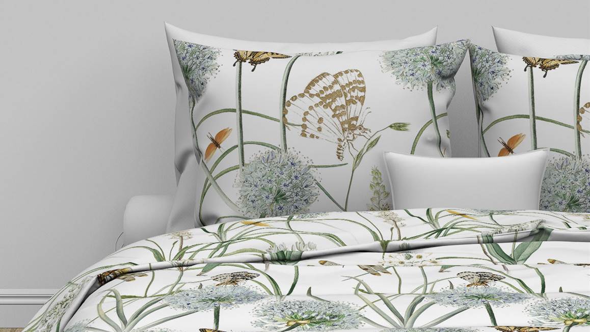 Zo!Home by Heckettlane Tamar katoensatijn dekbedovertrek vlinders, libellen, blauwe paardebloemen