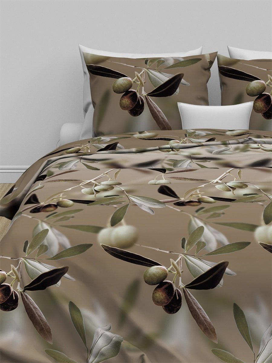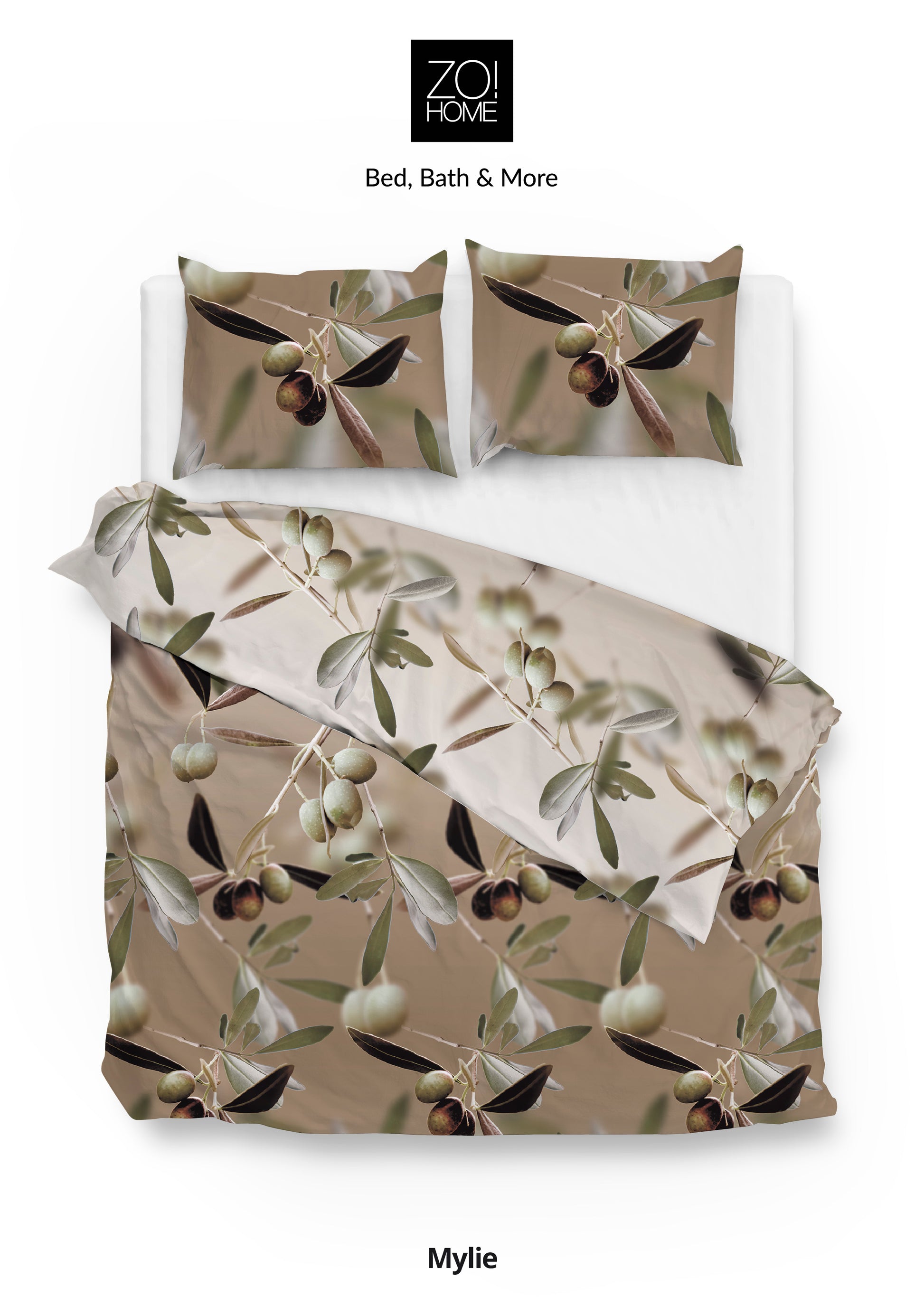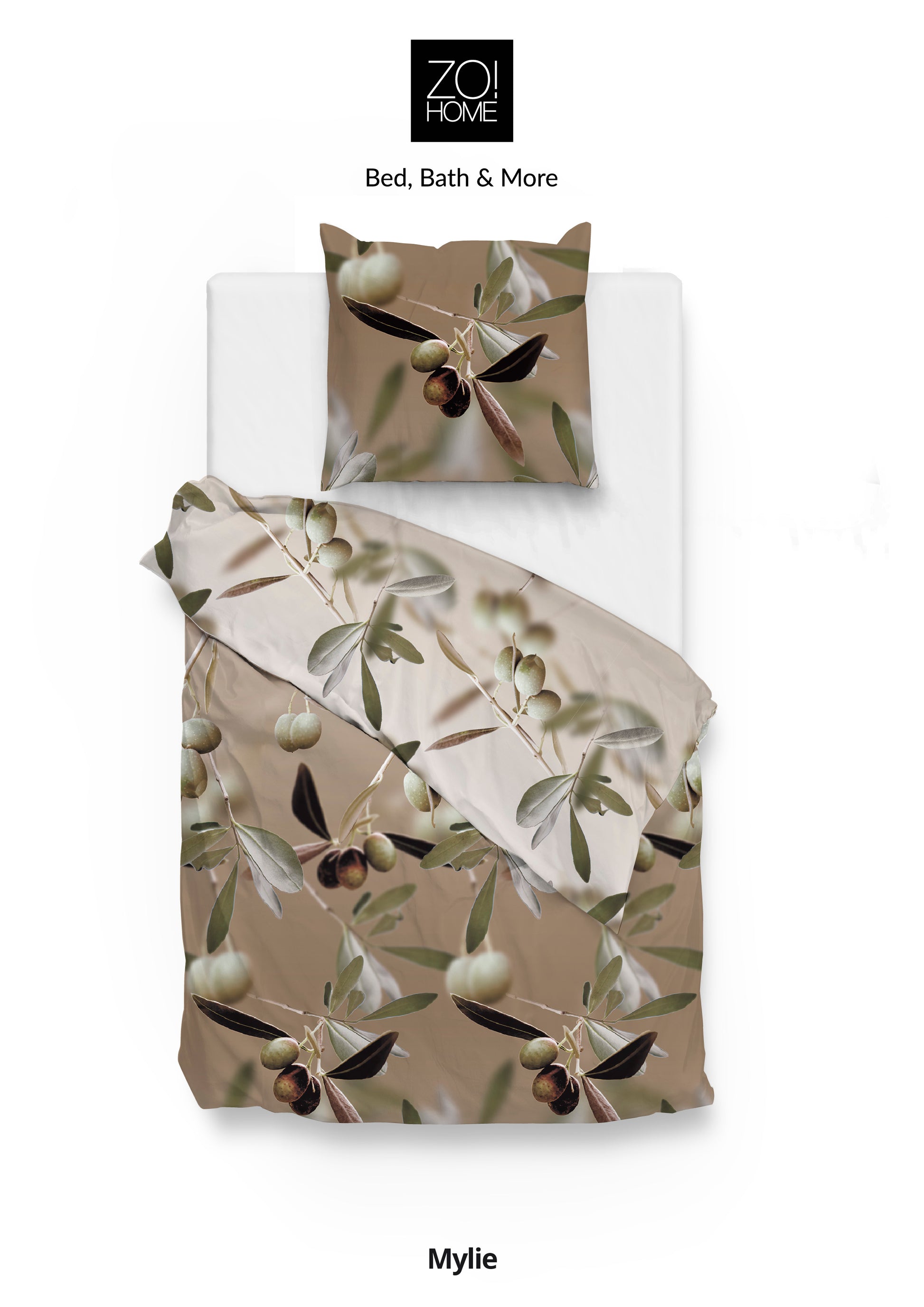 Zo!Home by Heckettlane Mylie taupe katoensatijnen dekbedovertrek; olijven 190TC